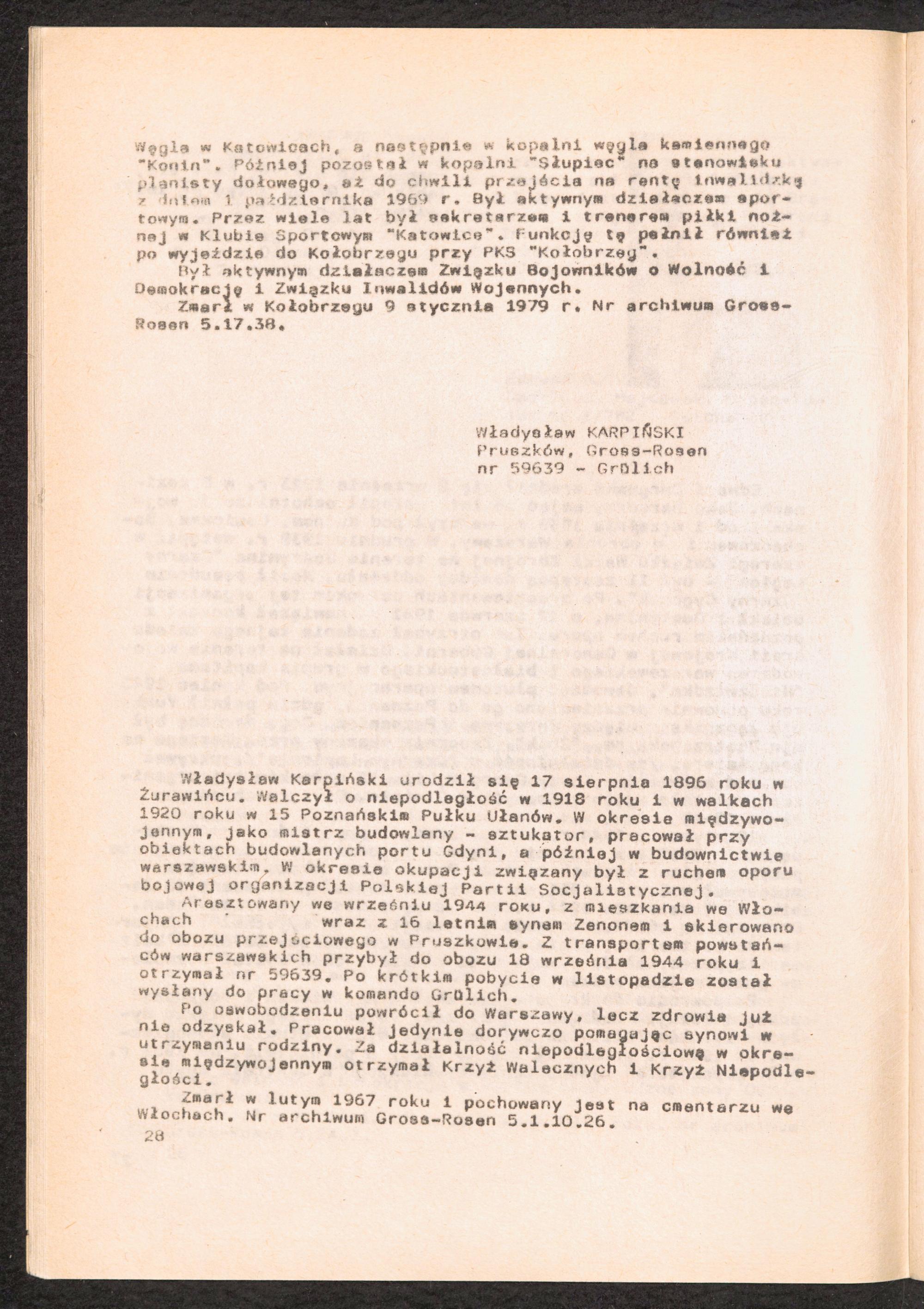 1984: Przezylismy Gross Rosen Tom IV, Biografie wieczniow, Zeszyt 2 : Wykaz pomordowanych ze zbiorow Romana Olszyny