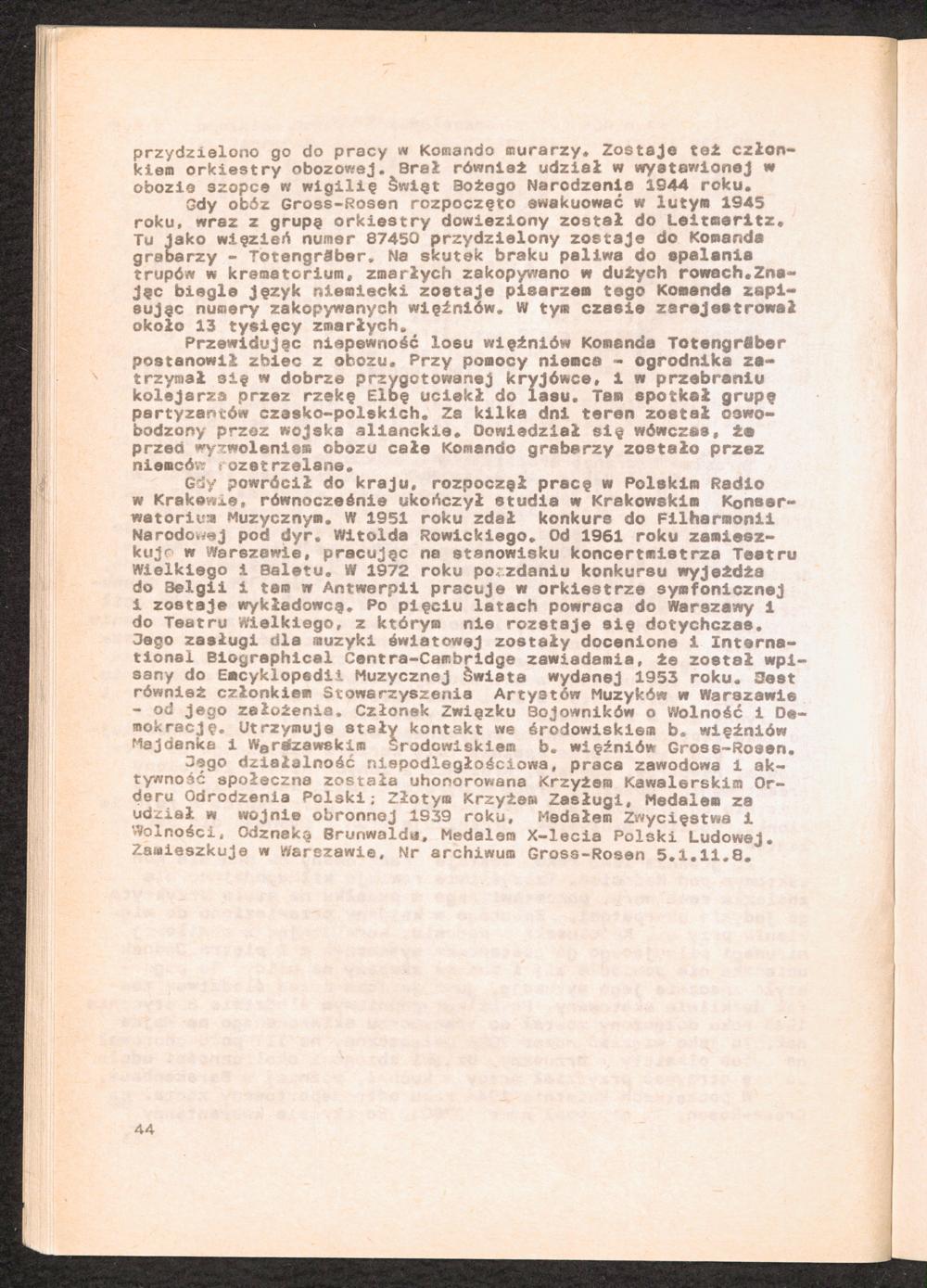 1984: Przezylismy Gross Rosen Tom IV, Biografie wieczniow, Zeszyt 2 : Wykaz pomordowanych ze zbiorow Romana Olszyny