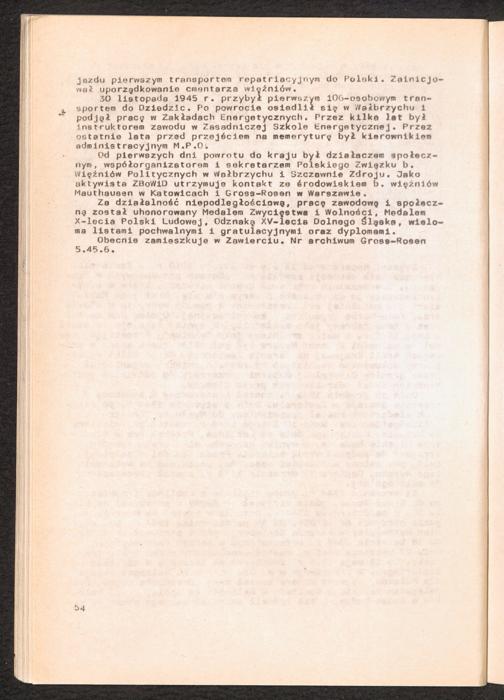 1984: Przezylismy Gross Rosen Tom IV, Biografie wieczniow, Zeszyt 2 : Wykaz pomordowanych ze zbiorow Romana Olszyny