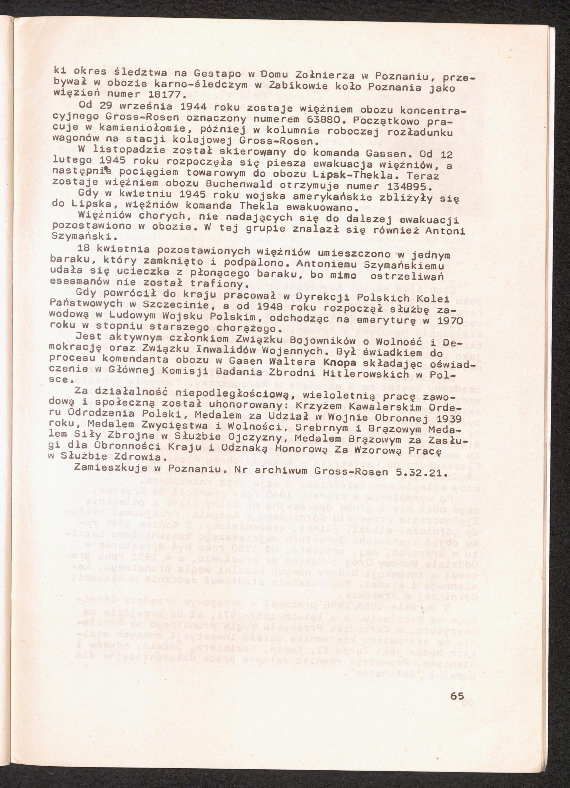1986: Przezylismy Gross Rosen Tom IV, Biografie wieczniow, Zeszyt 4