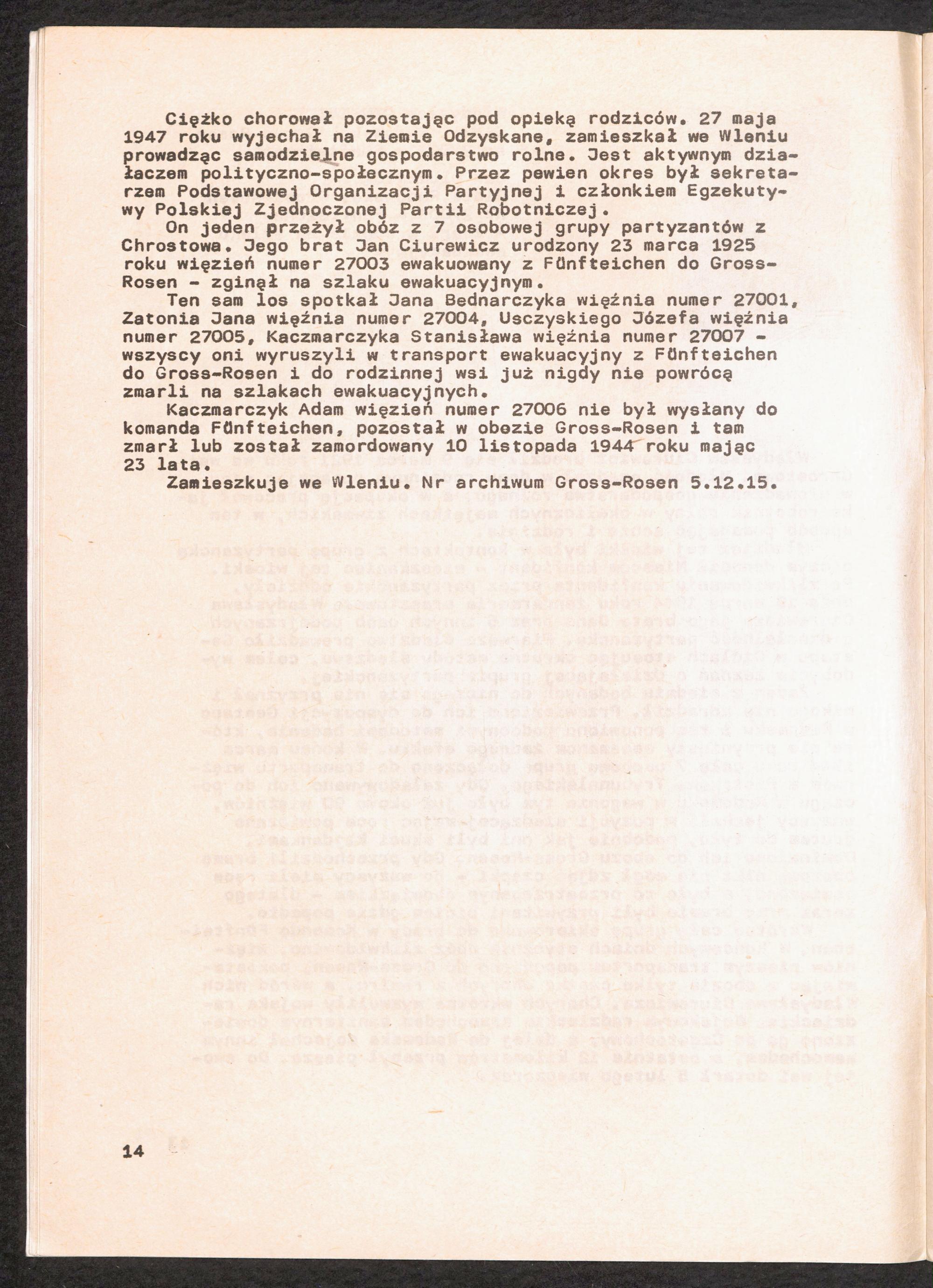 1986: Przezylismy Gross Rosen Tom IV, Biografie wieczniow, Zeszyt 5
