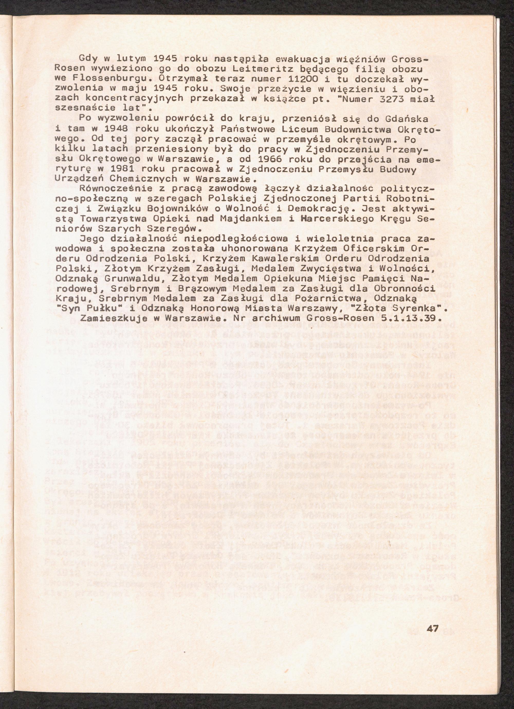 1986: Przezylismy Gross Rosen Tom IV, Biografie wieczniow, Zeszyt 5