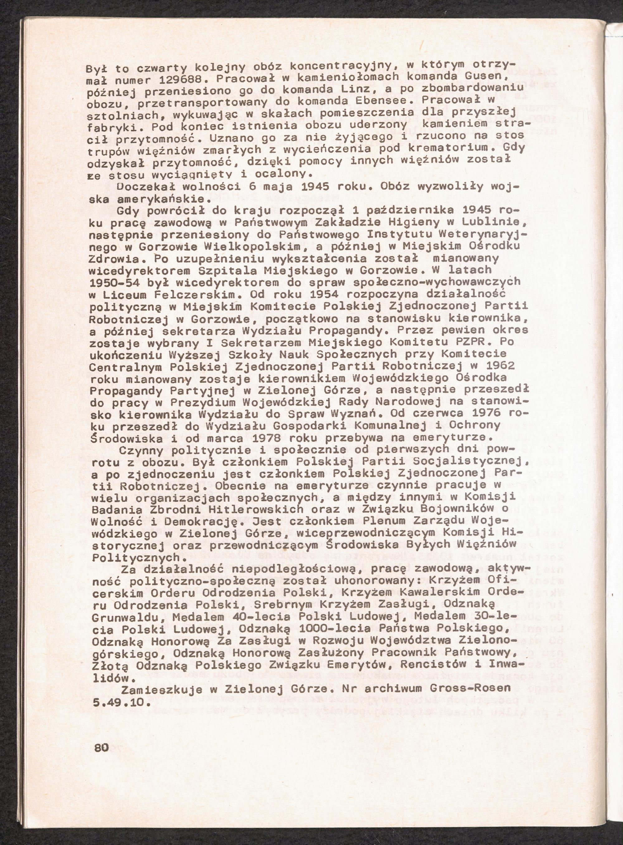 1986: Przezylismy Gross Rosen Tom IV, Biografie wieczniow, Zeszyt 5