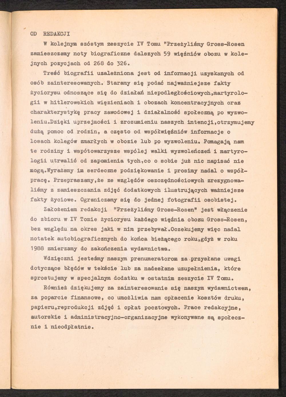 1987: Przezylismy Gross Rosen Tom IV, Biografie wieczniow, Zeszyt 6
