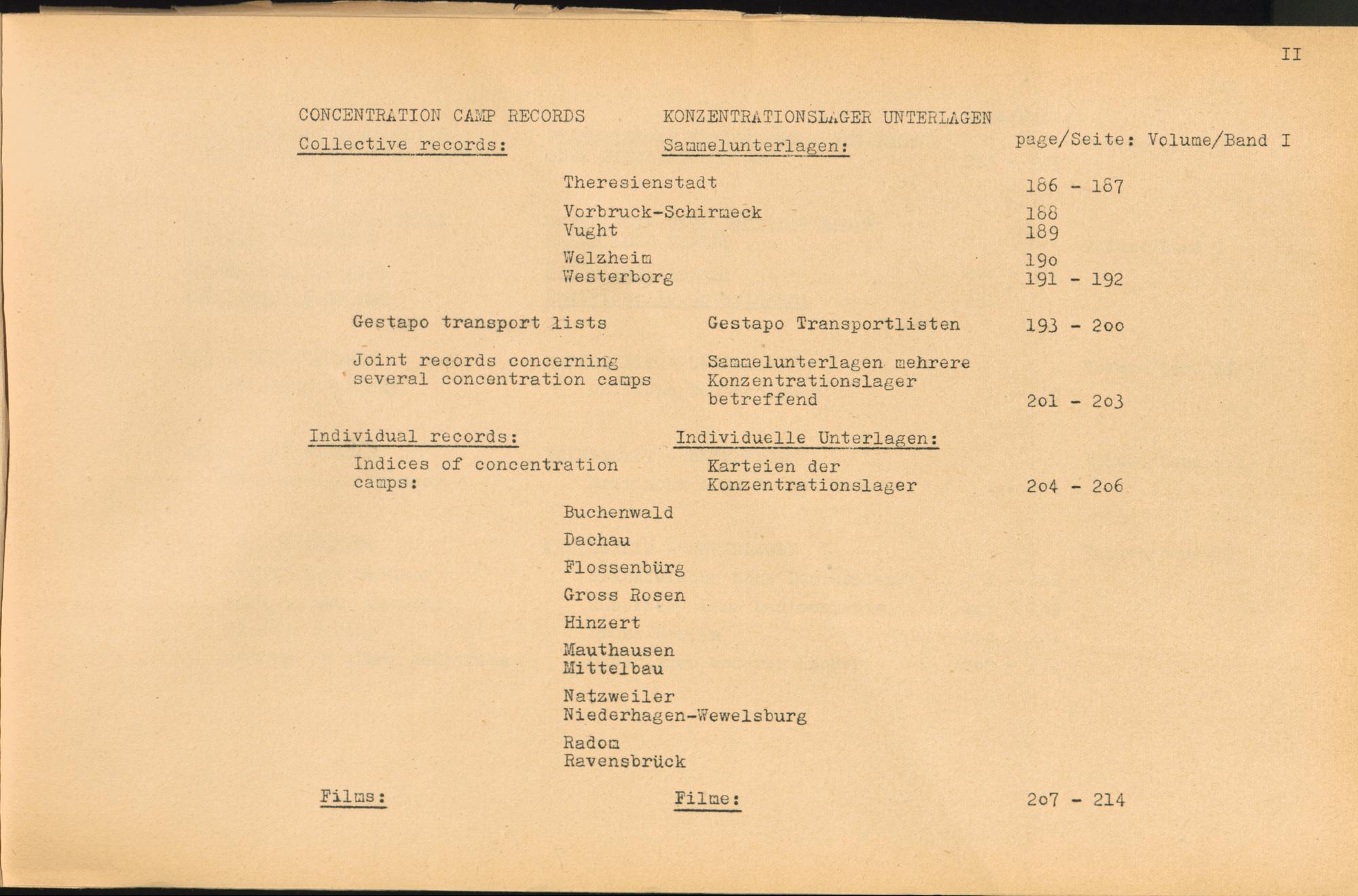 Vol. II (1954) Catalogue of Records held by the International Tracing Service of the Allied High Commission For Germany at Arolsen
