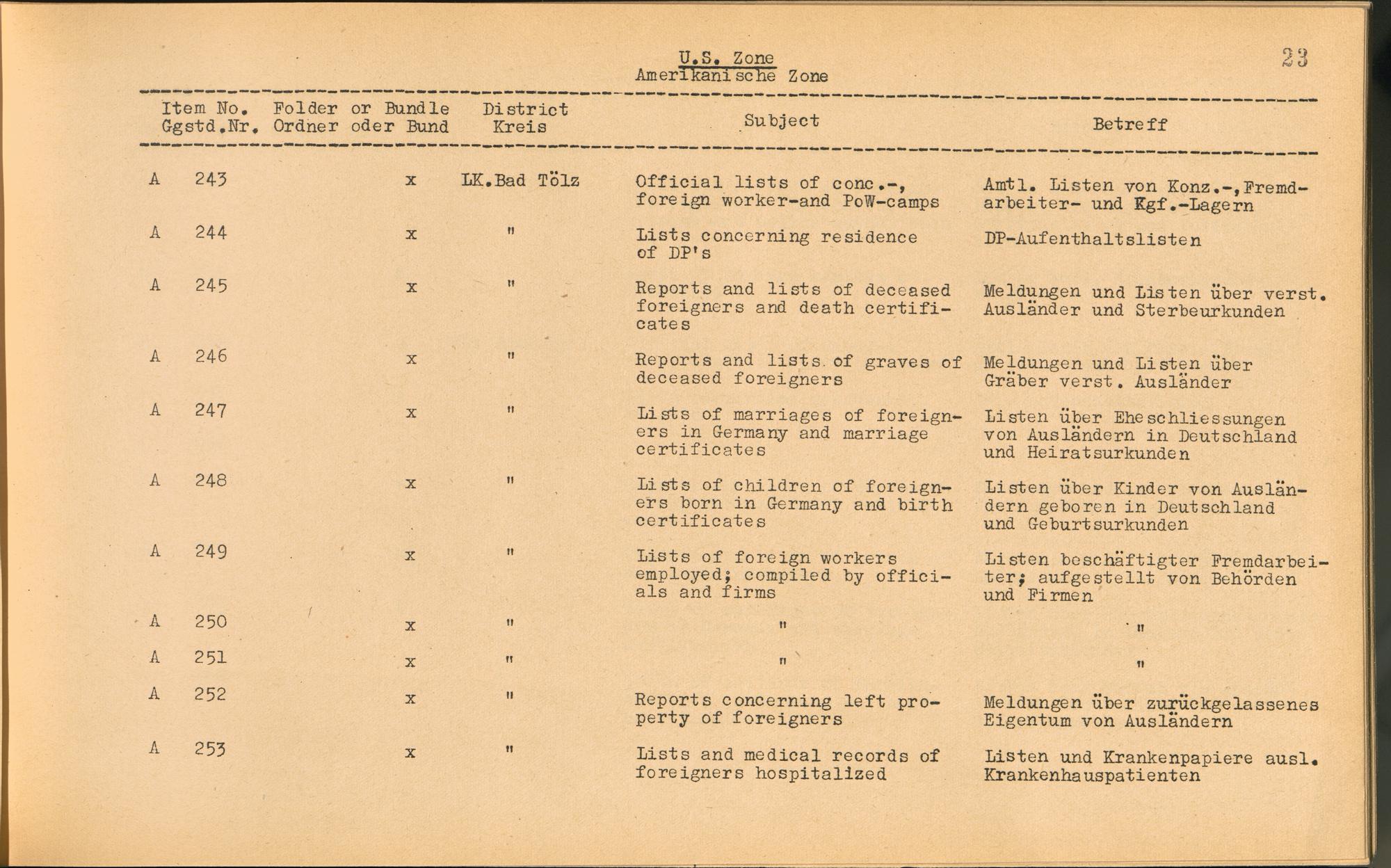 Vol. II (1954) Catalogue of Records held by the International Tracing Service of the Allied High Commission For Germany at Arolsen
