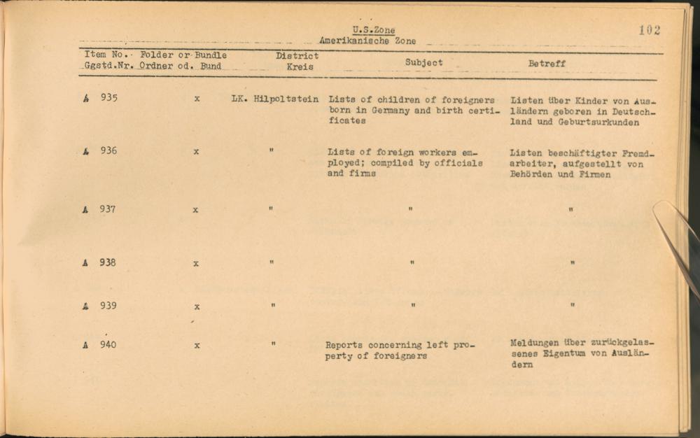 Vol. II (1954) Catalogue of Records held by the International Tracing Service of the Allied High Commission For Germany at Arolsen
