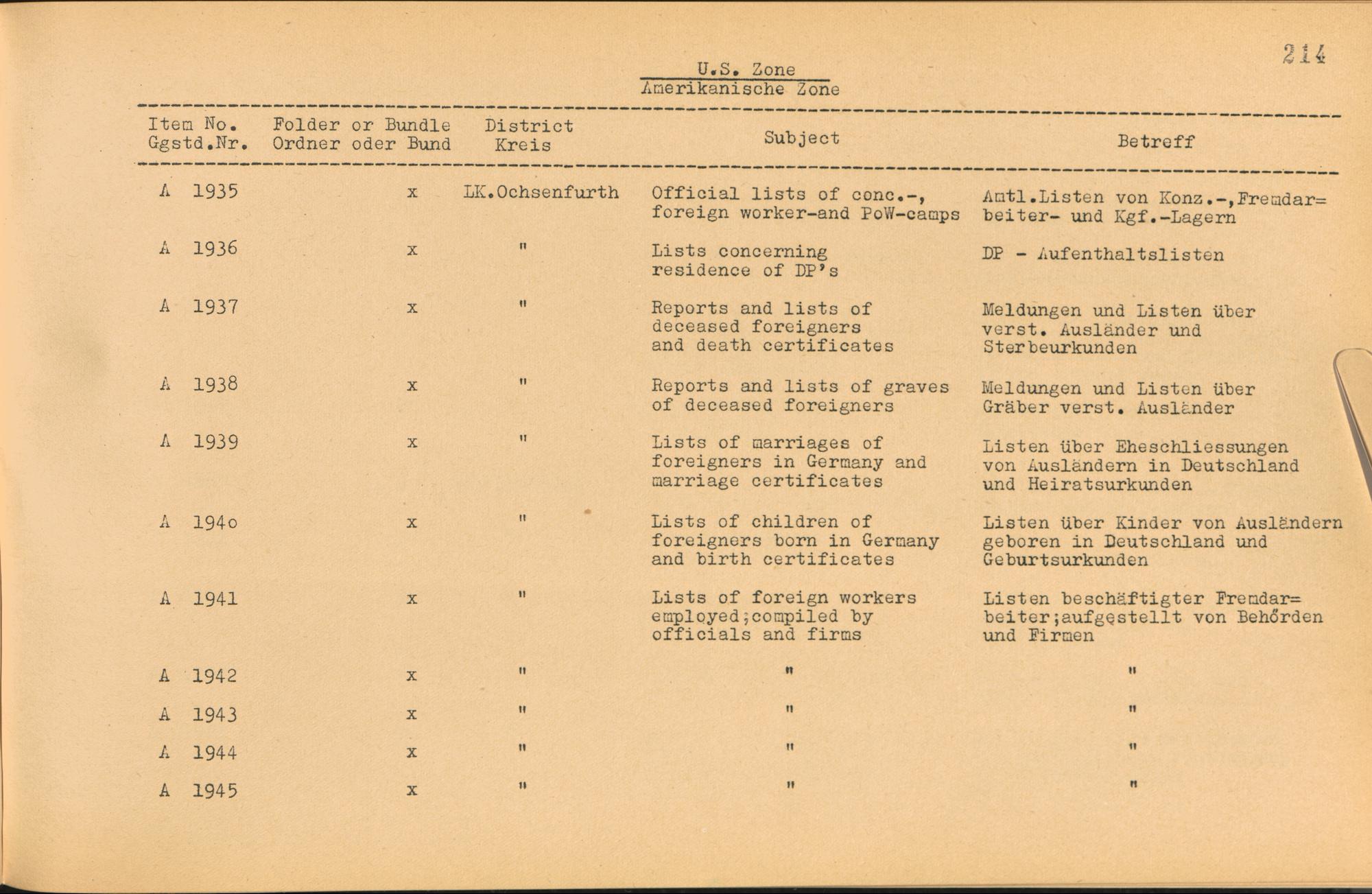Vol. II (1954) Catalogue of Records held by the International Tracing Service of the Allied High Commission For Germany at Arolsen