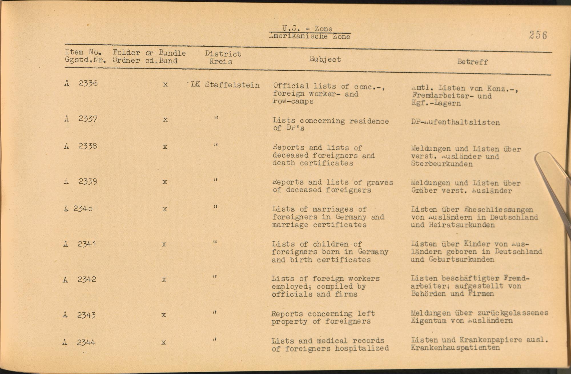 Vol. II (1954) Catalogue of Records held by the International Tracing Service of the Allied High Commission For Germany at Arolsen