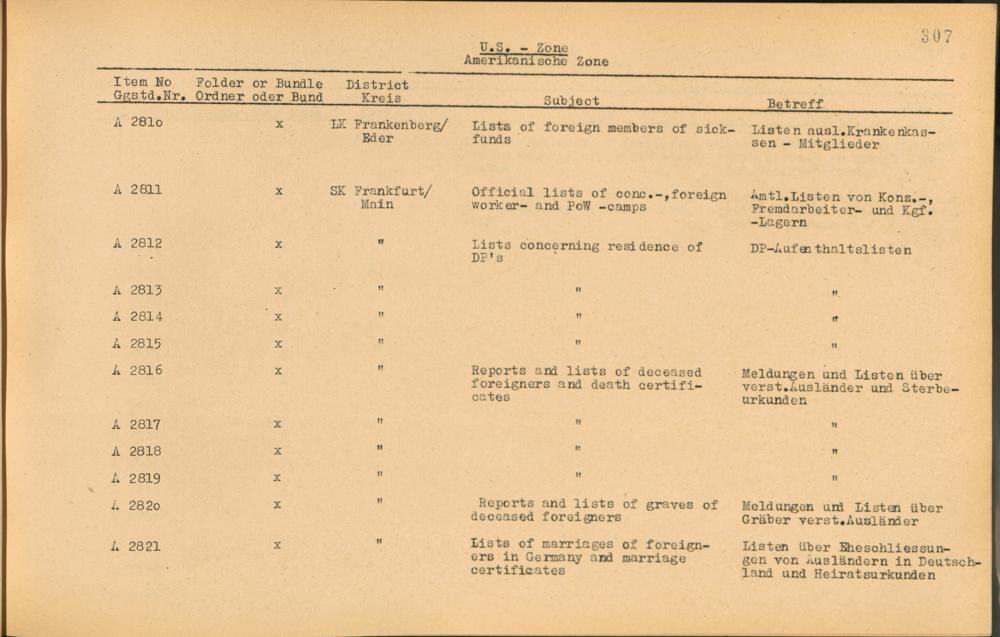 Vol. II (1954) Catalogue of Records held by the International Tracing Service of the Allied High Commission For Germany at Arolsen