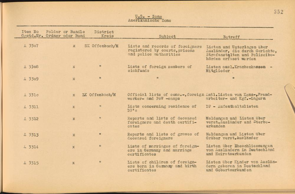 Vol. II (1954) Catalogue of Records held by the International Tracing Service of the Allied High Commission For Germany at Arolsen