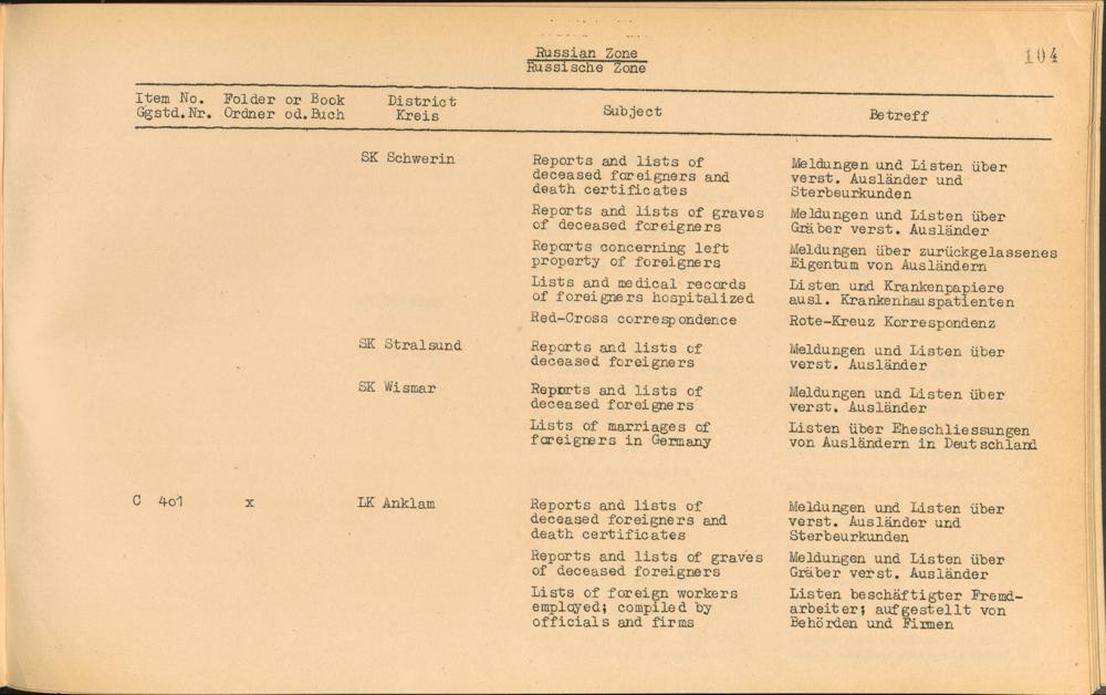 Vol. IV (1954) Catalogue of Records held by the International Tracing Service of the Allied High Commission For Germany at Arolsen