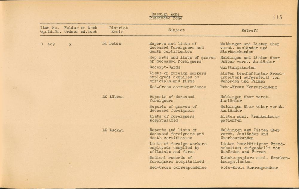 Vol. IV (1954) Catalogue of Records held by the International Tracing Service of the Allied High Commission For Germany at Arolsen
