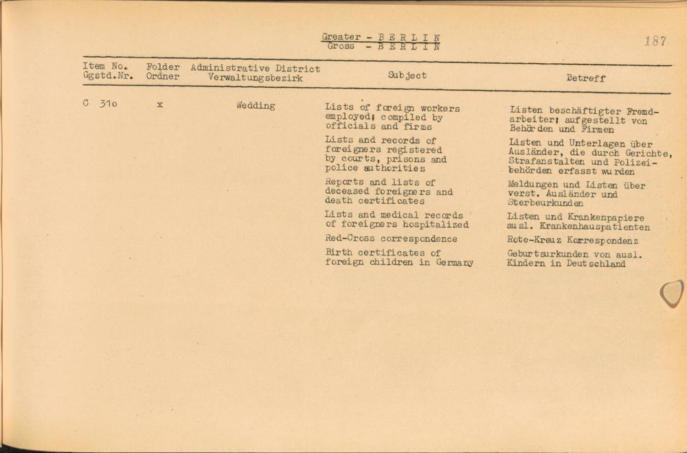 Vol. IV (1954) Catalogue of Records held by the International Tracing Service of the Allied High Commission For Germany at Arolsen