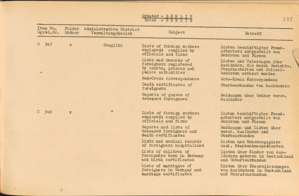 Vol. IV (1954) Catalogue of Records held by the International Tracing Service of the Allied High Commission For Germany at Arolsen