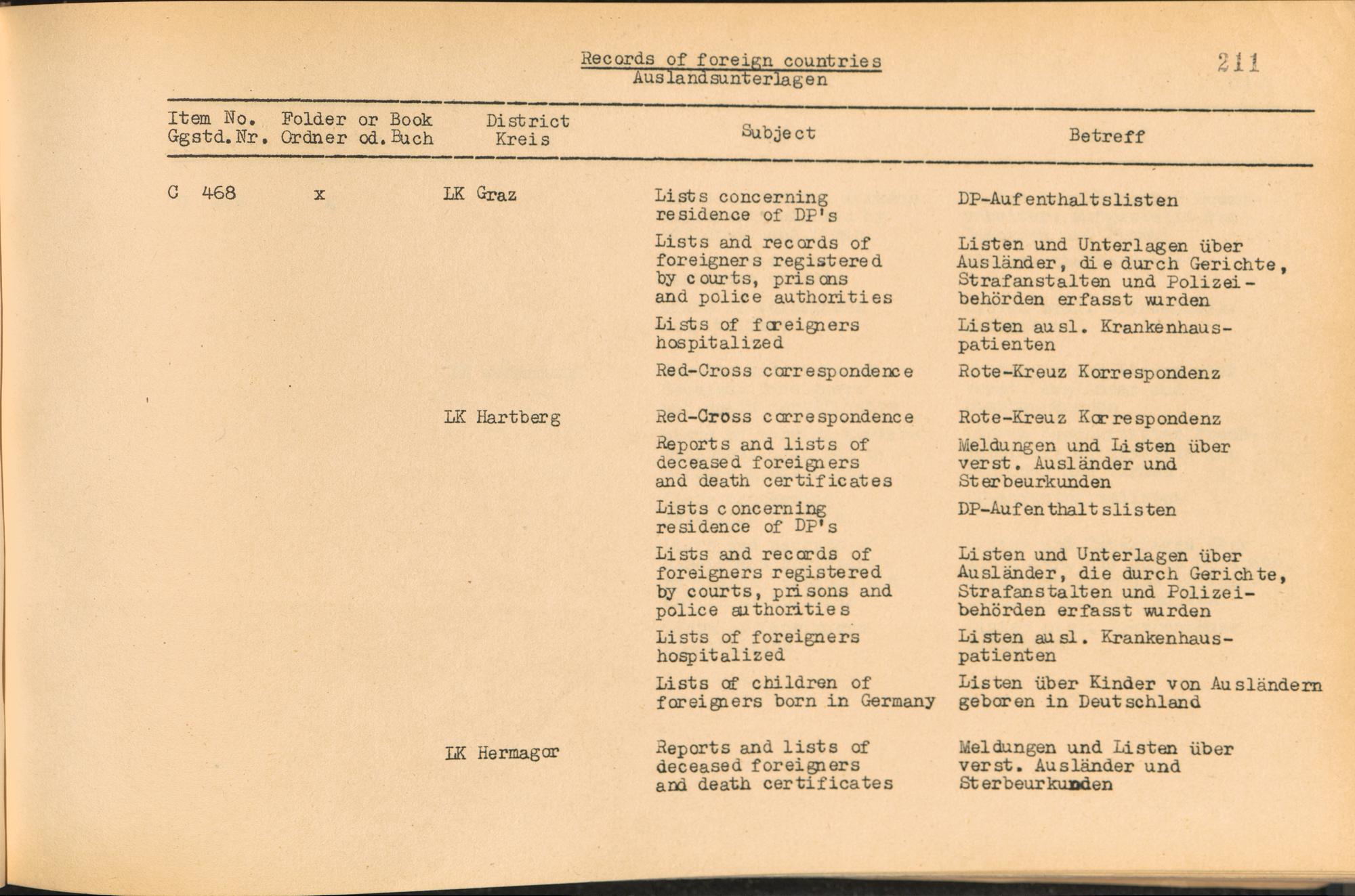 Vol. IV (1954) Catalogue of Records held by the International Tracing Service of the Allied High Commission For Germany at Arolsen