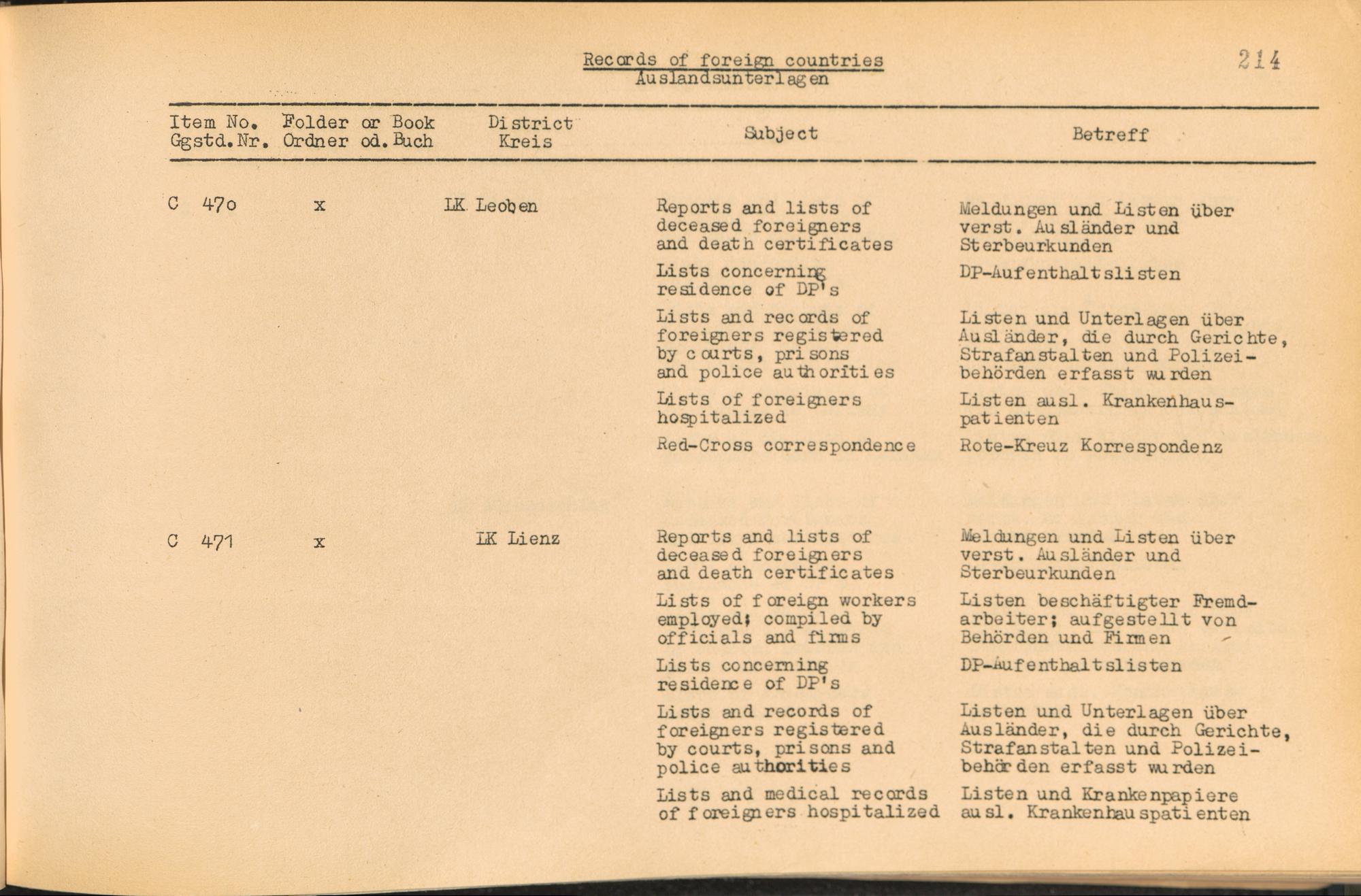 Vol. IV (1954) Catalogue of Records held by the International Tracing Service of the Allied High Commission For Germany at Arolsen