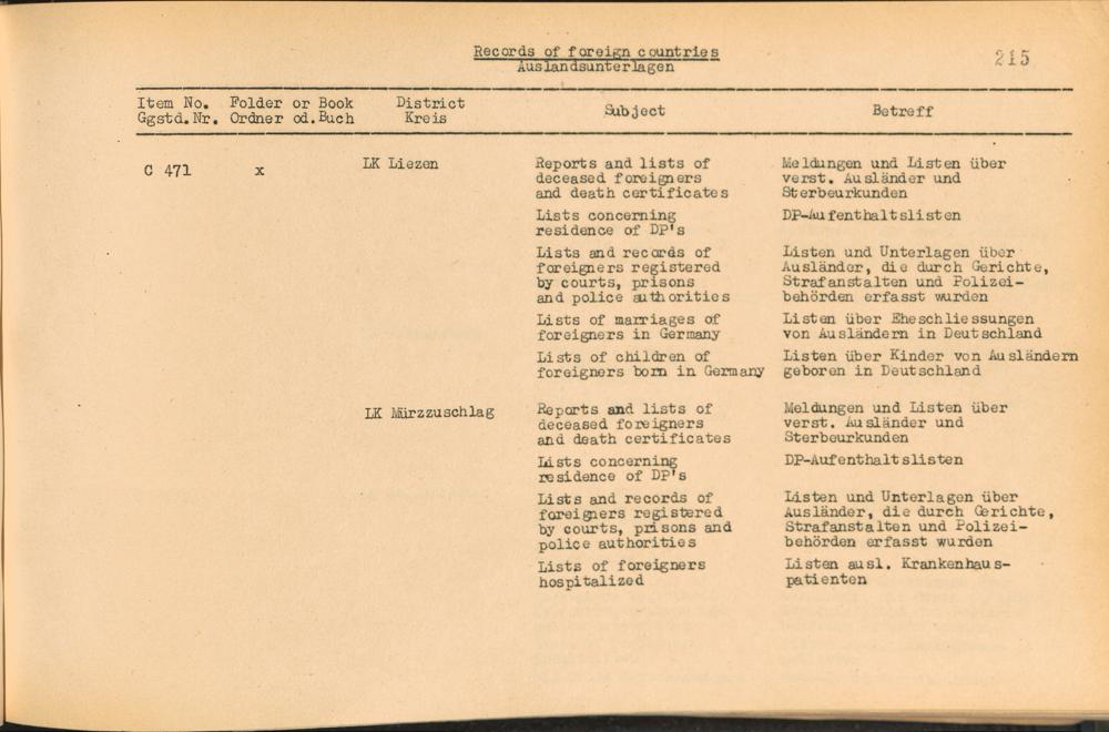 Vol. IV (1954) Catalogue of Records held by the International Tracing Service of the Allied High Commission For Germany at Arolsen