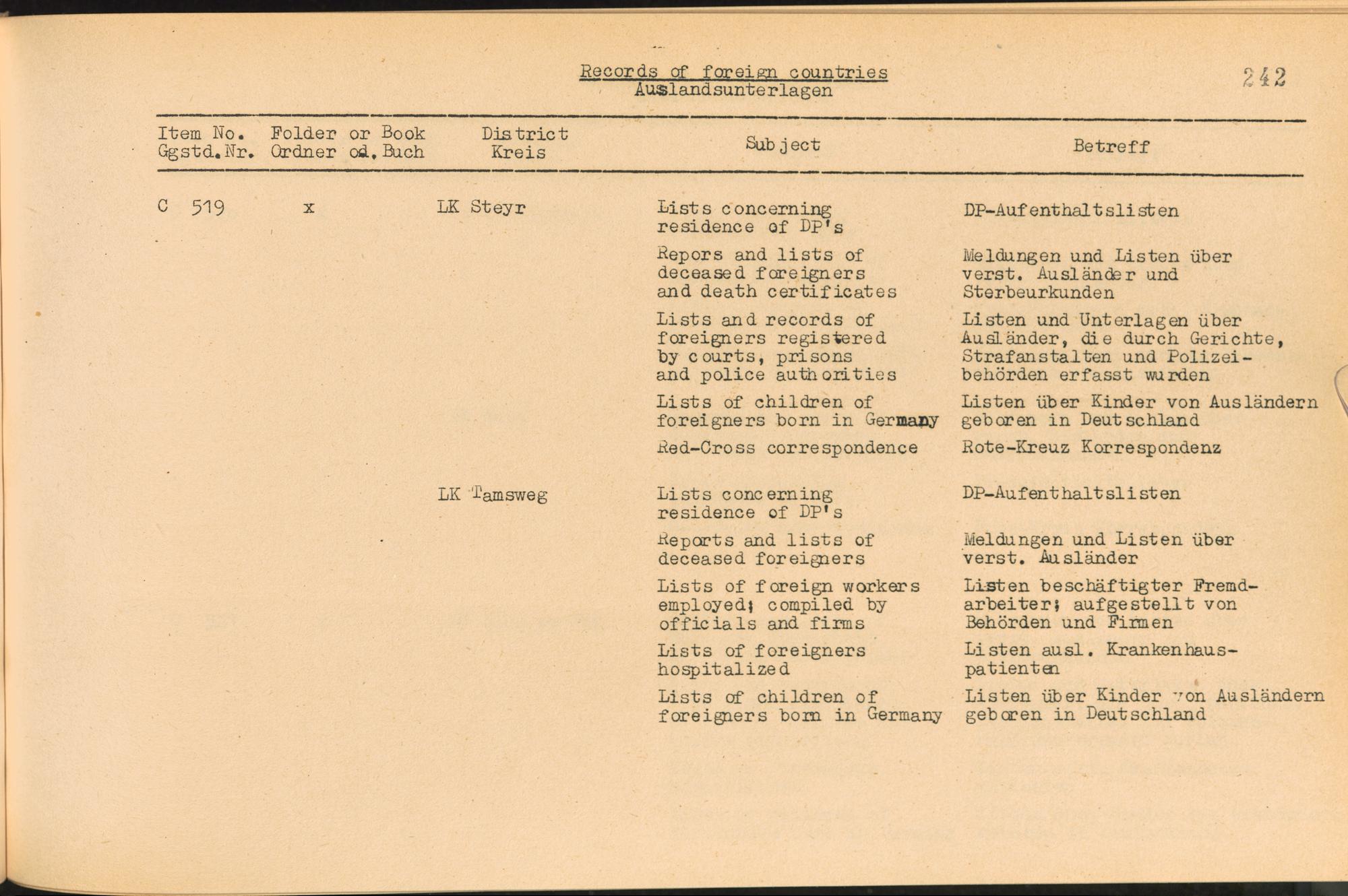 Vol. IV (1954) Catalogue of Records held by the International Tracing Service of the Allied High Commission For Germany at Arolsen