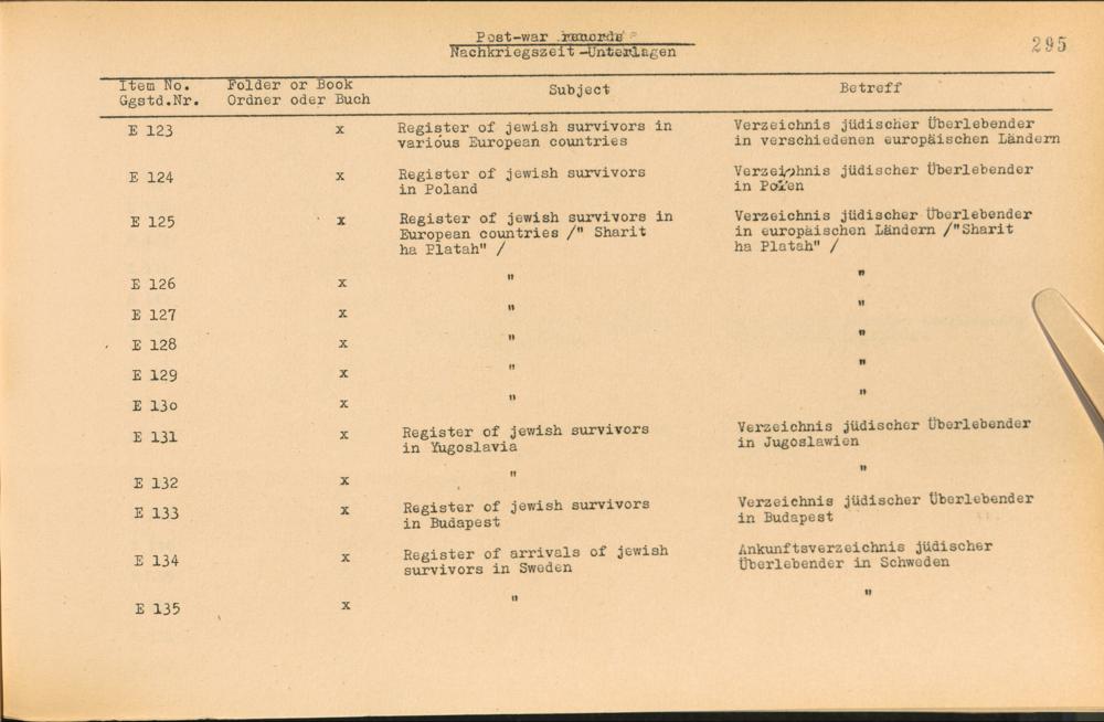 Vol. IV (1954) Catalogue of Records held by the International Tracing Service of the Allied High Commission For Germany at Arolsen