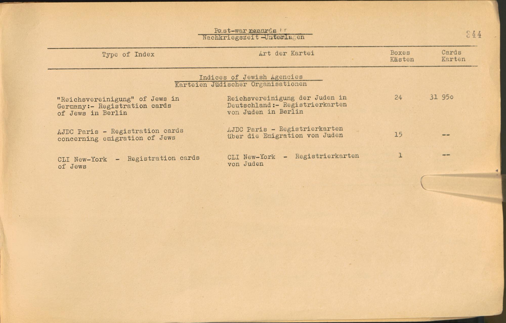 Vol. IV (1954) Catalogue of Records held by the International Tracing Service of the Allied High Commission For Germany at Arolsen