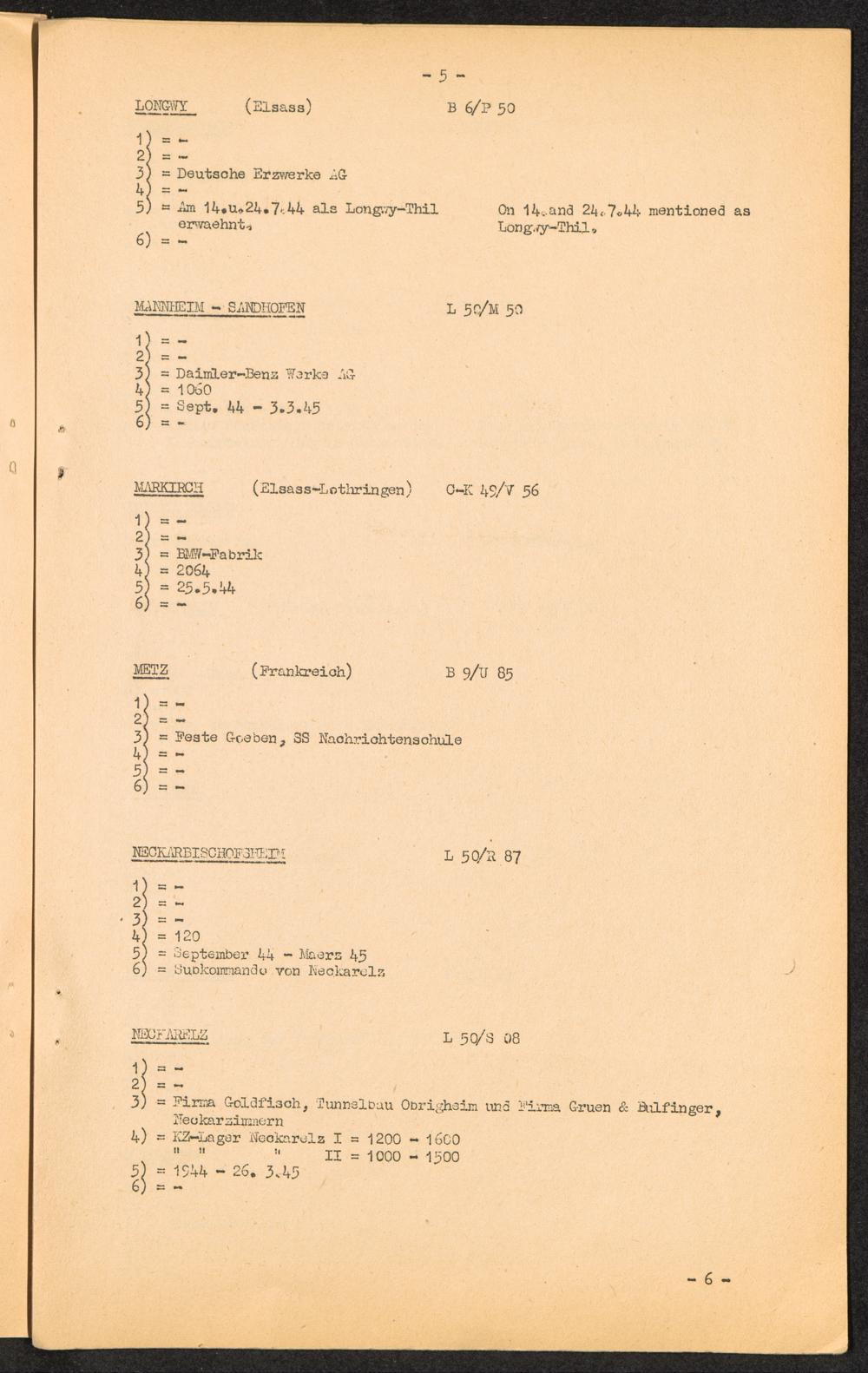 K.Z. Natzweiler - Aussenkommandos / C.C. Natzweiler - Kdos. / International Tracing Service