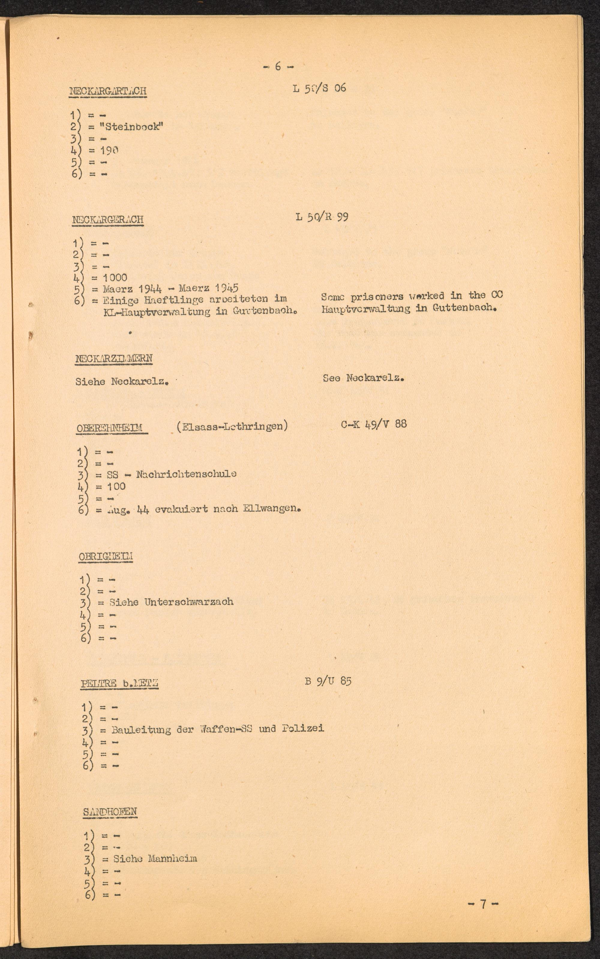 K.Z. Natzweiler - Aussenkommandos / C.C. Natzweiler - Kdos. / International Tracing Service