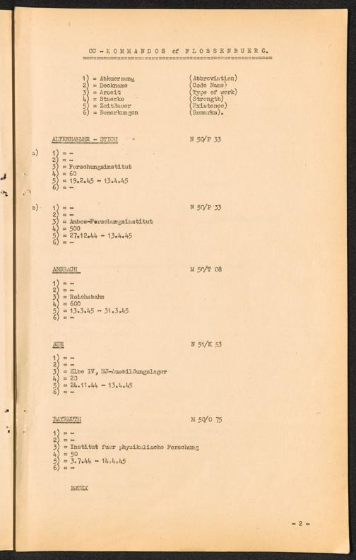 K.Z. Flossenbürg - Aussenkommandos. / C.C. Flossenbürg - Kdos. / International Tracing Service