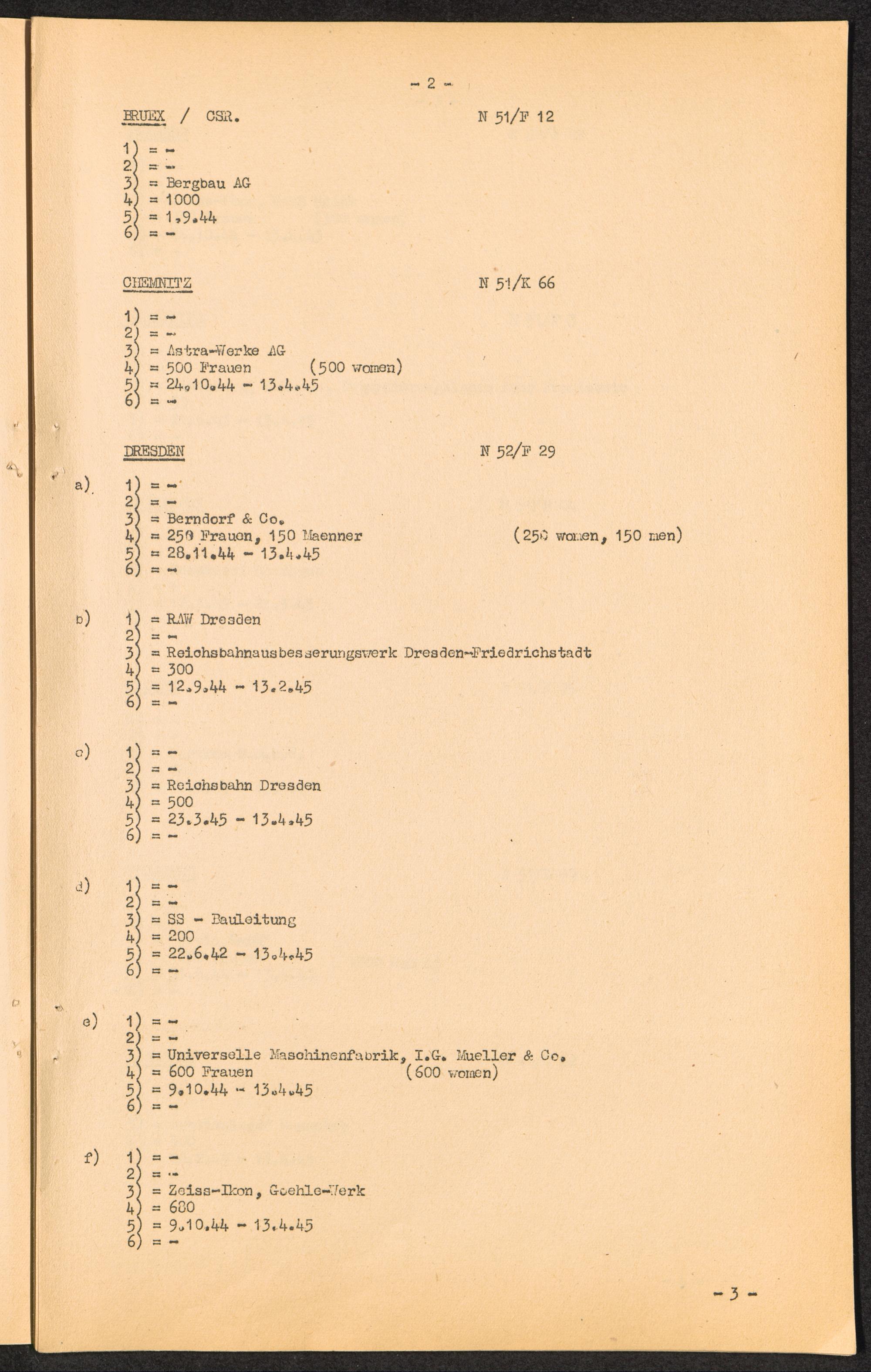 K.Z. Flossenbürg - Aussenkommandos. / C.C. Flossenbürg - Kdos. / International Tracing Service