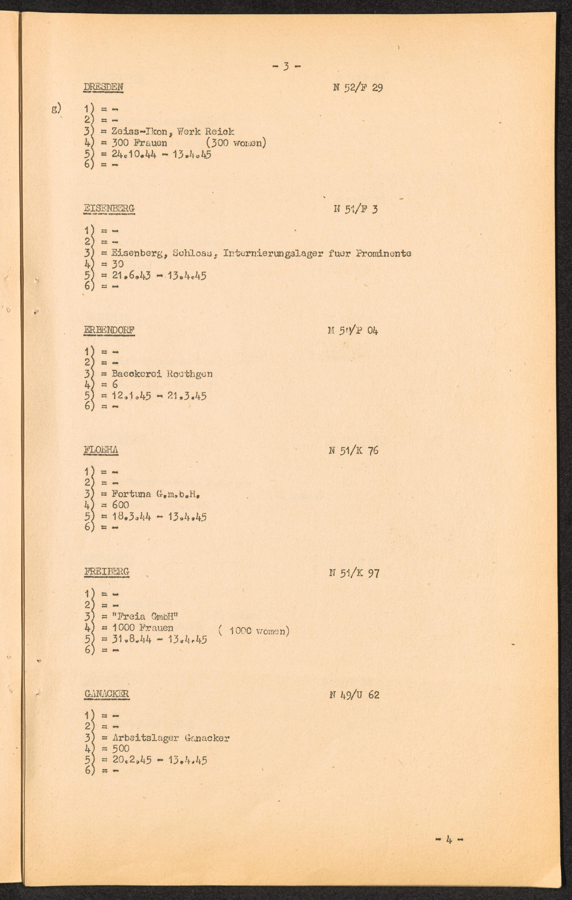 K.Z. Flossenbürg - Aussenkommandos. / C.C. Flossenbürg - Kdos. / International Tracing Service