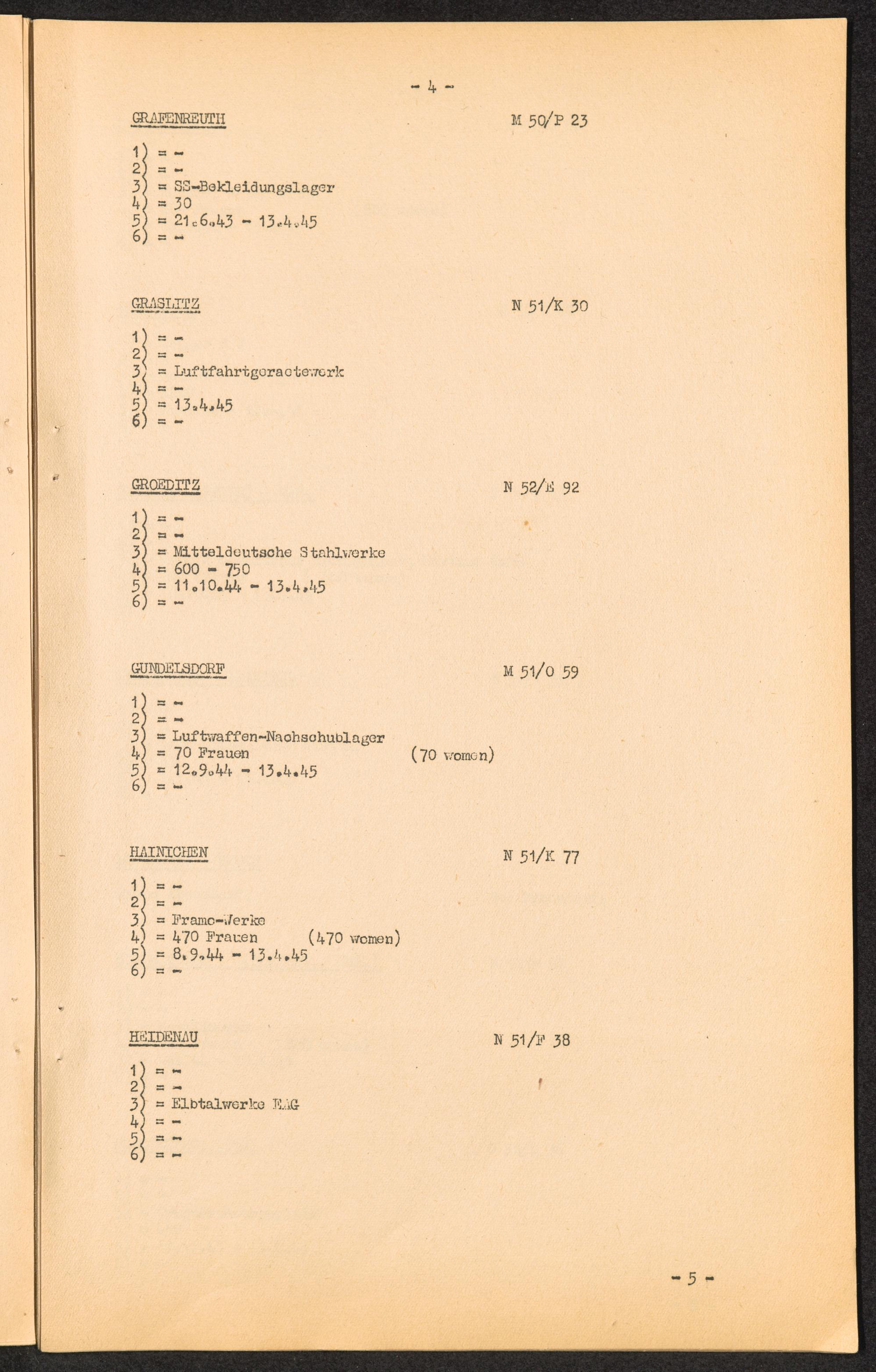 K.Z. Flossenbürg - Aussenkommandos. / C.C. Flossenbürg - Kdos. / International Tracing Service