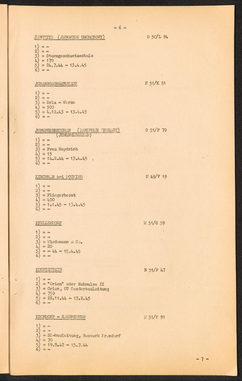K.Z. Flossenbürg - Aussenkommandos. / C.C. Flossenbürg - Kdos. / International Tracing Service