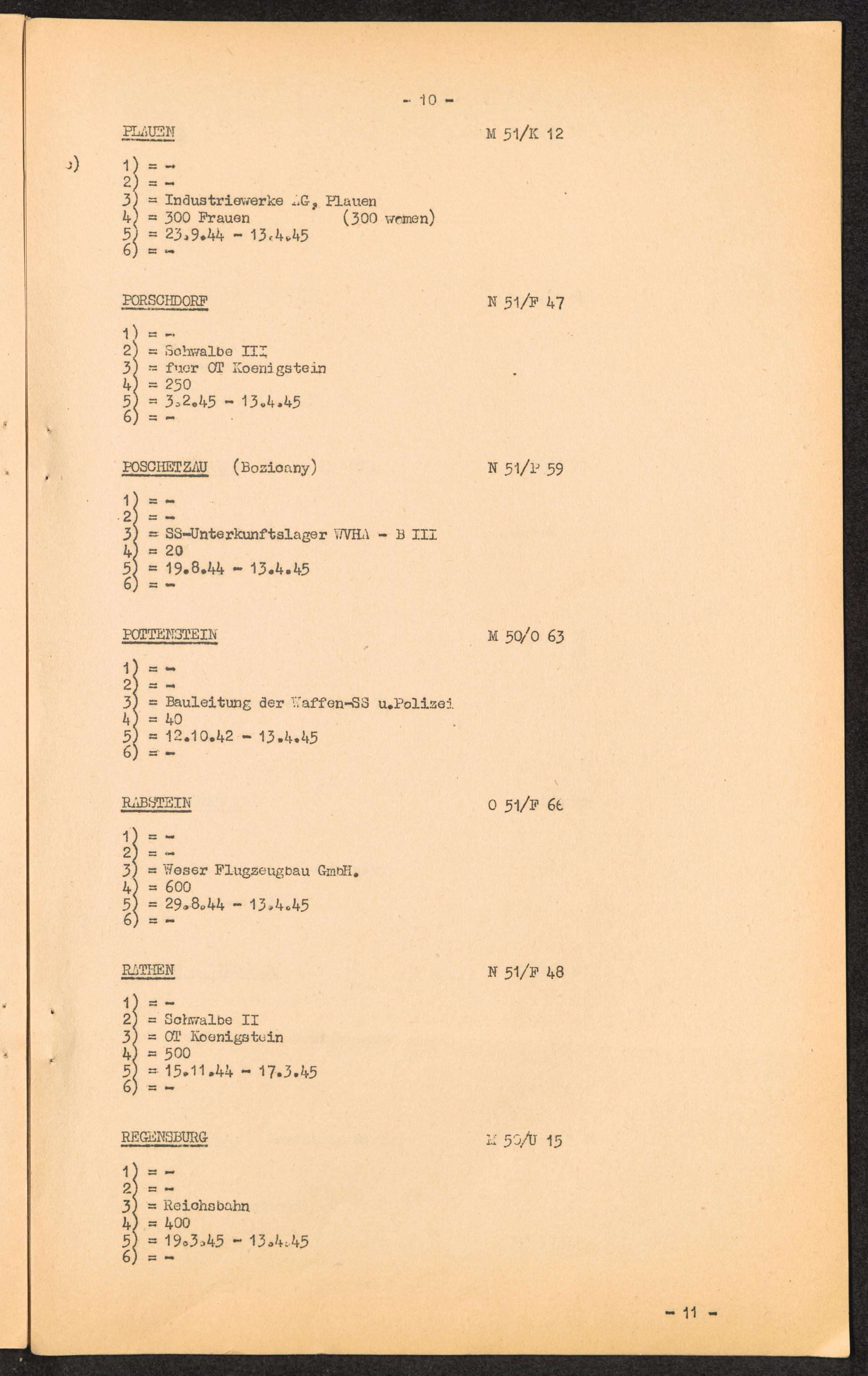 K.Z. Flossenbürg - Aussenkommandos. / C.C. Flossenbürg - Kdos. / International Tracing Service