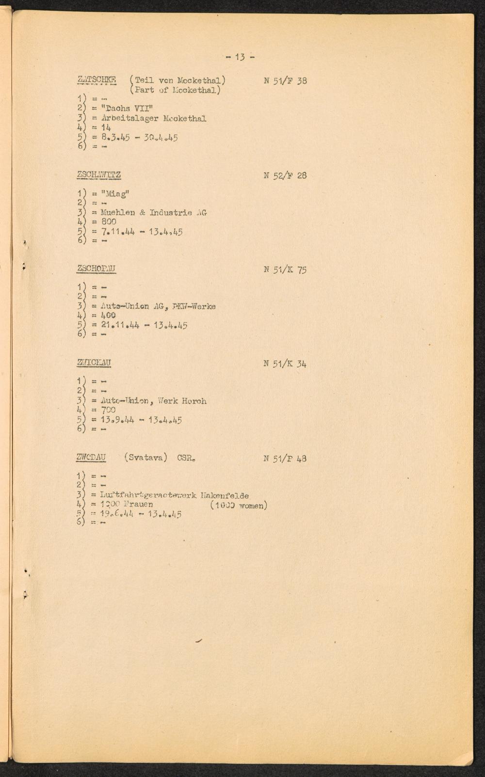 K.Z. Flossenbürg - Aussenkommandos. / C.C. Flossenbürg - Kdos. / International Tracing Service
