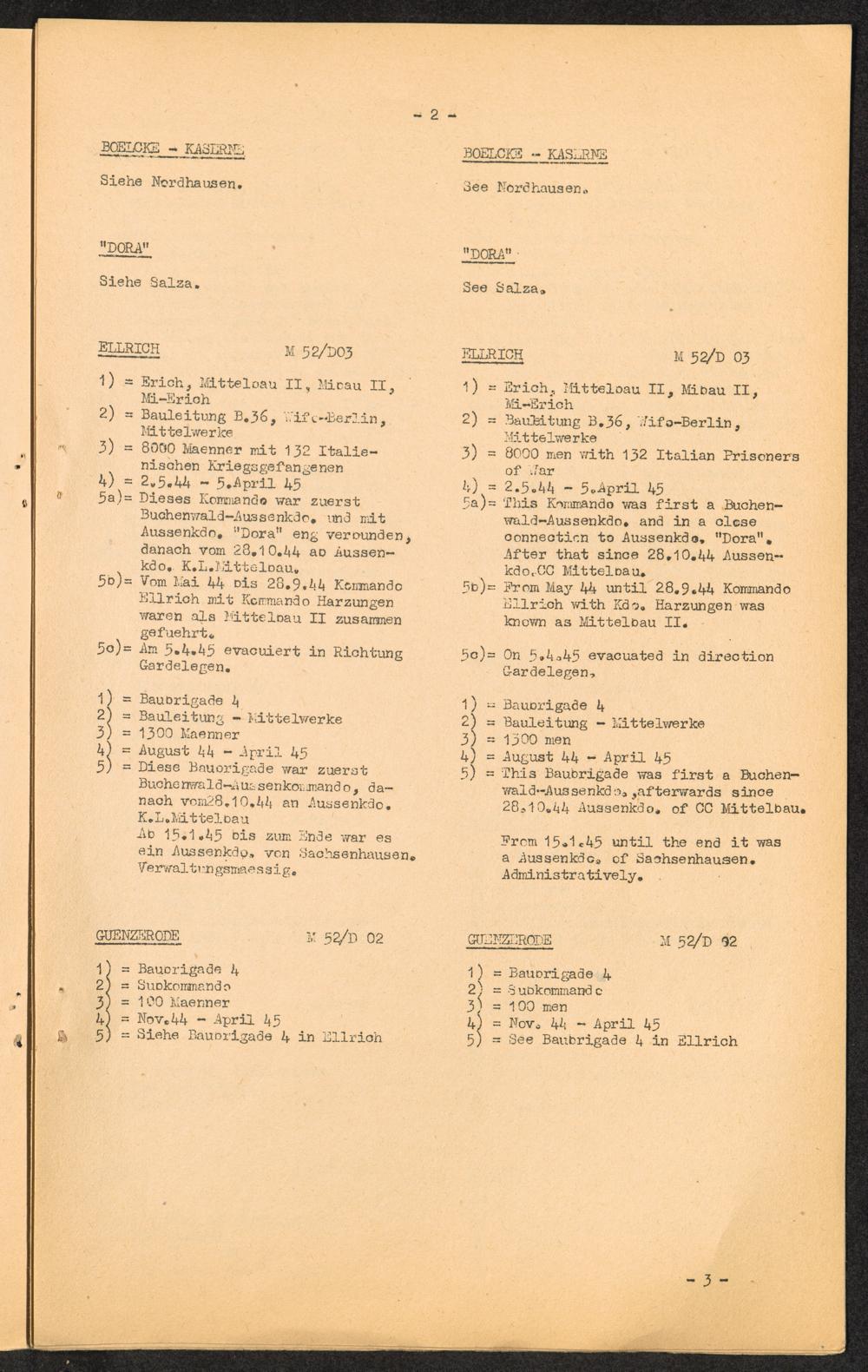 K.Z. Dora - Aussenkommandos / C.C. Dora - Kdos. / International Tracing Service