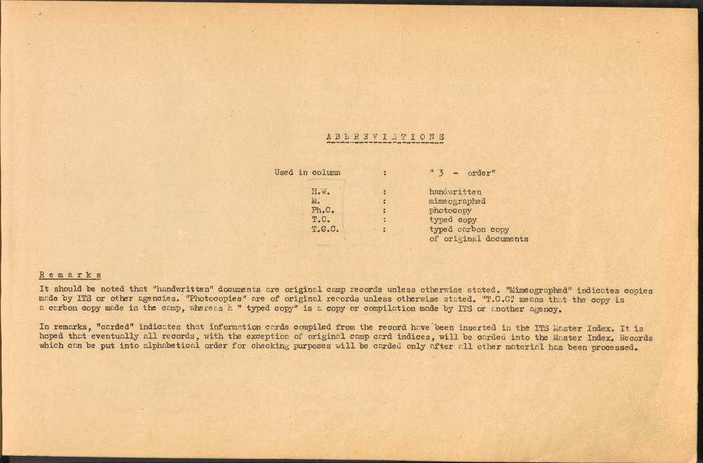 Band 1: Catalogue of Concentration Camp Records held by the International Tracing Service of the Allied High Commission for Germany, Volume I