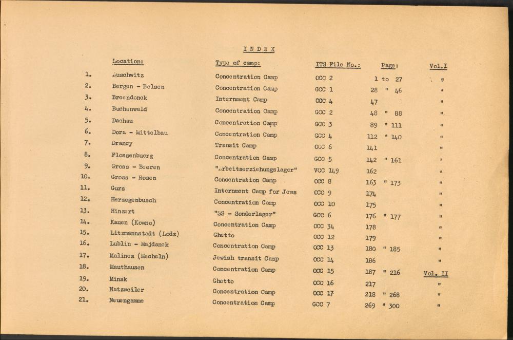 Band 1: Catalogue of Concentration Camp Records held by the International Tracing Service of the Allied High Commission for Germany, Volume I