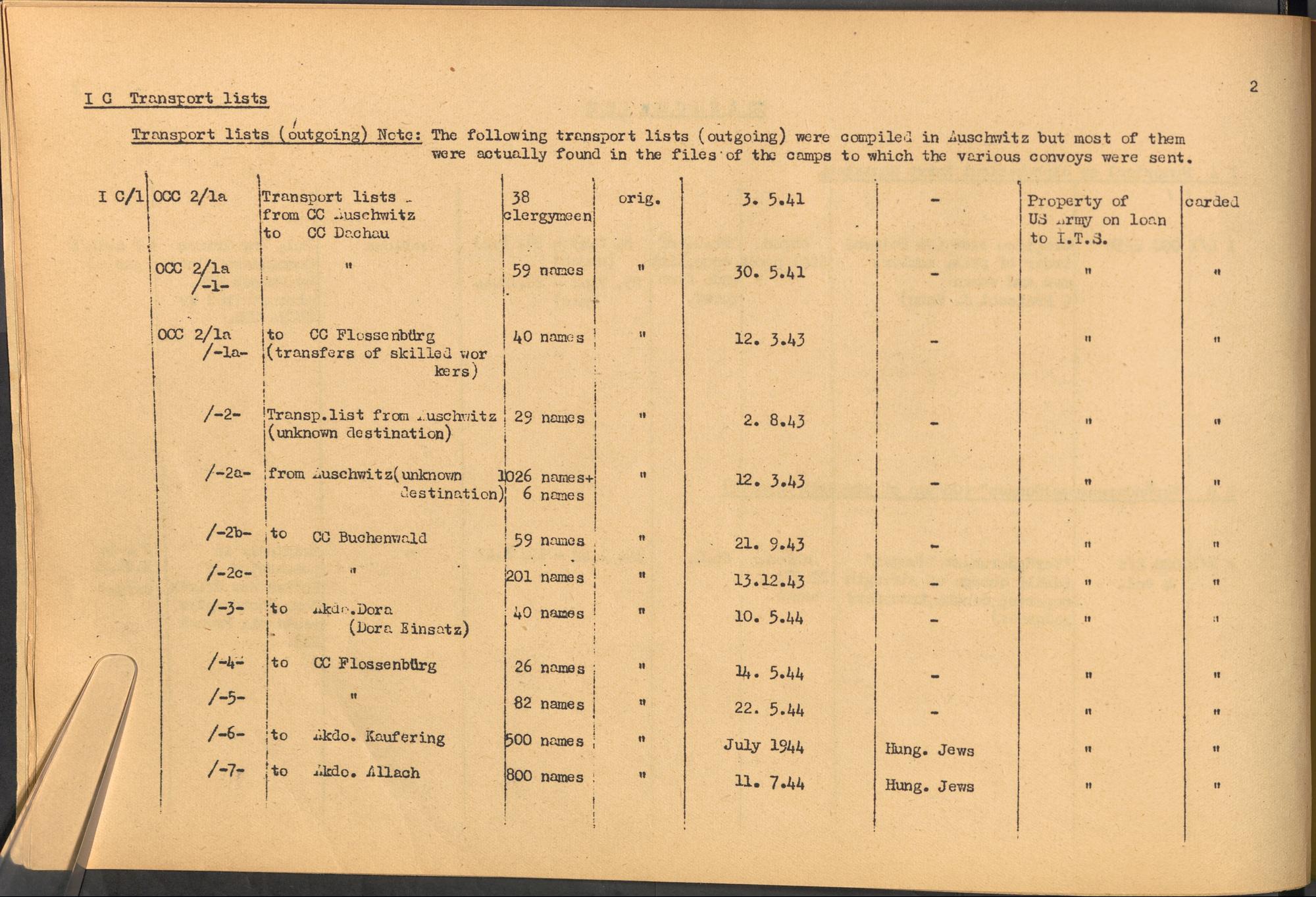Band 1: Catalogue of Concentration Camp Records held by the International Tracing Service of the Allied High Commission for Germany, Volume I