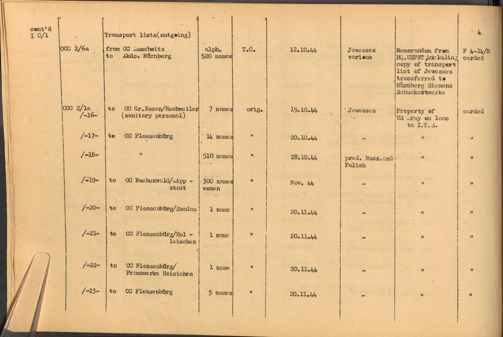 Band 1: Catalogue of Concentration Camp Records held by the International Tracing Service of the Allied High Commission for Germany, Volume I