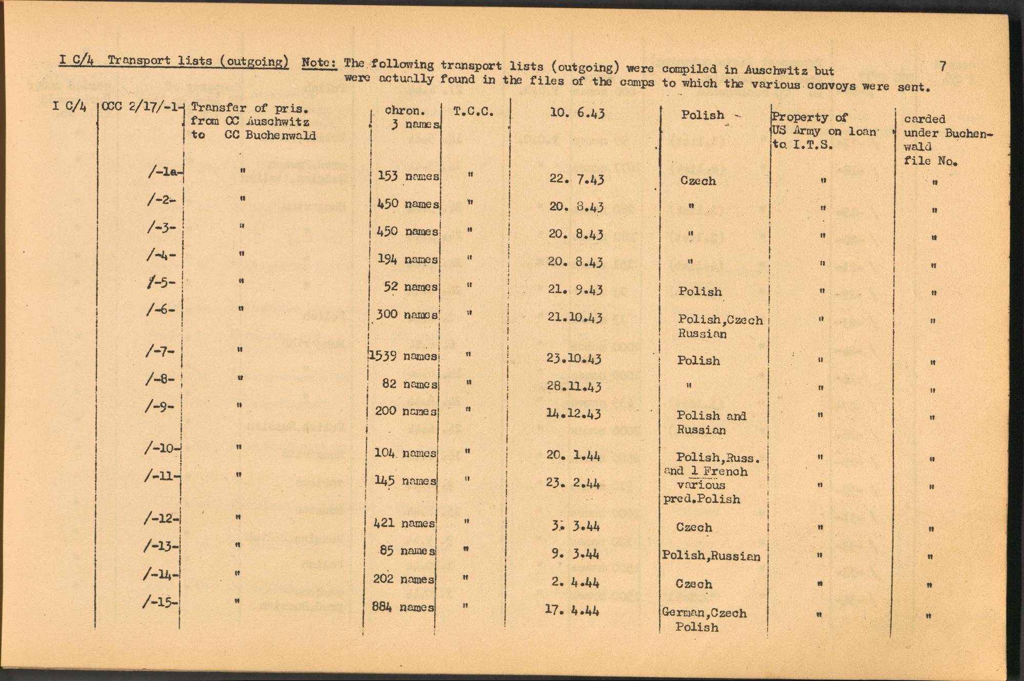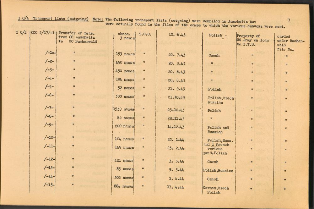 Band 1: Catalogue of Concentration Camp Records held by the International Tracing Service of the Allied High Commission for Germany, Volume I