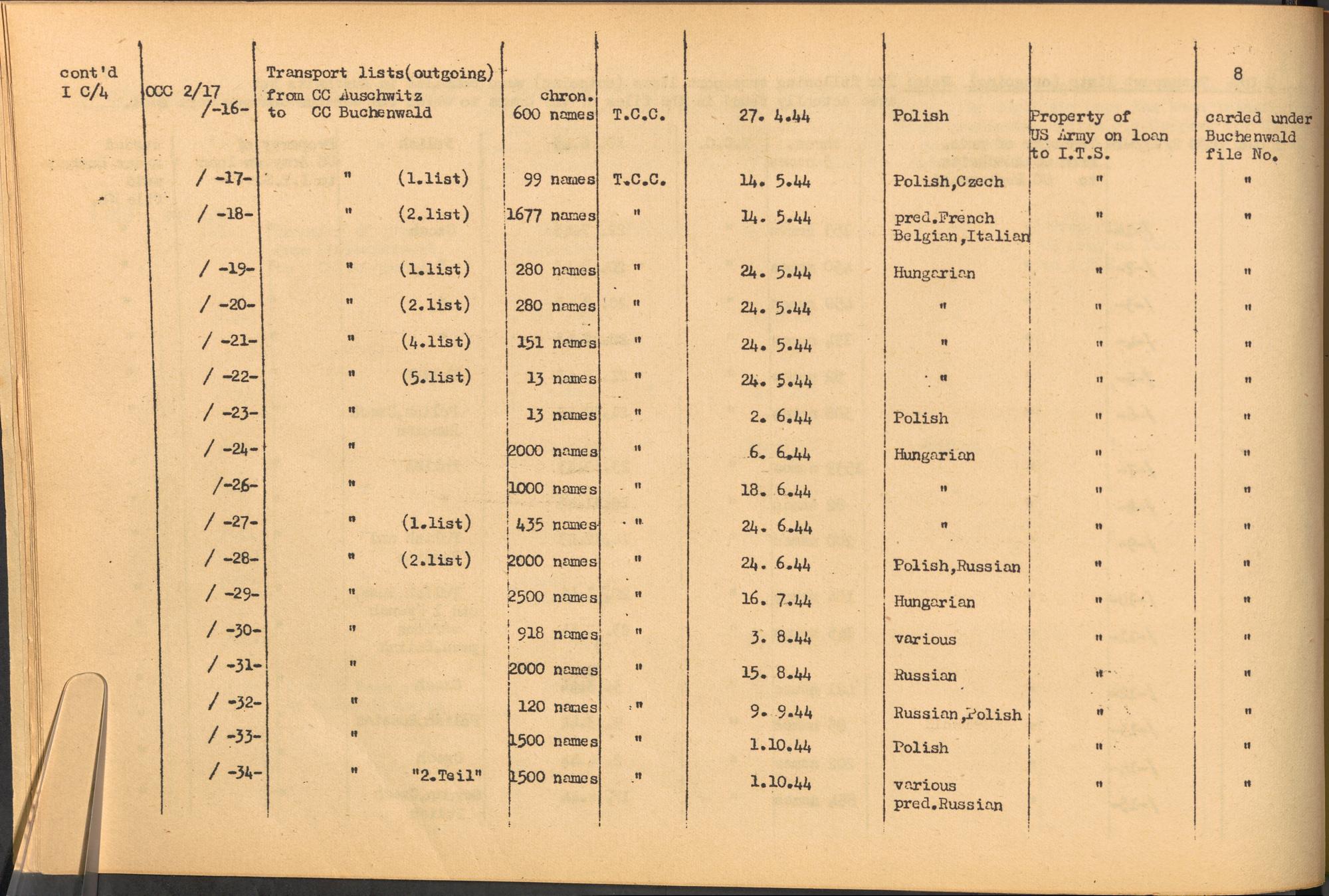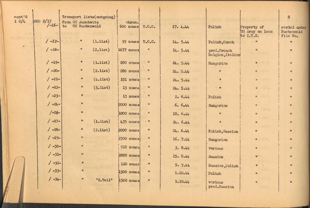 Band 1: Catalogue of Concentration Camp Records held by the International Tracing Service of the Allied High Commission for Germany, Volume I