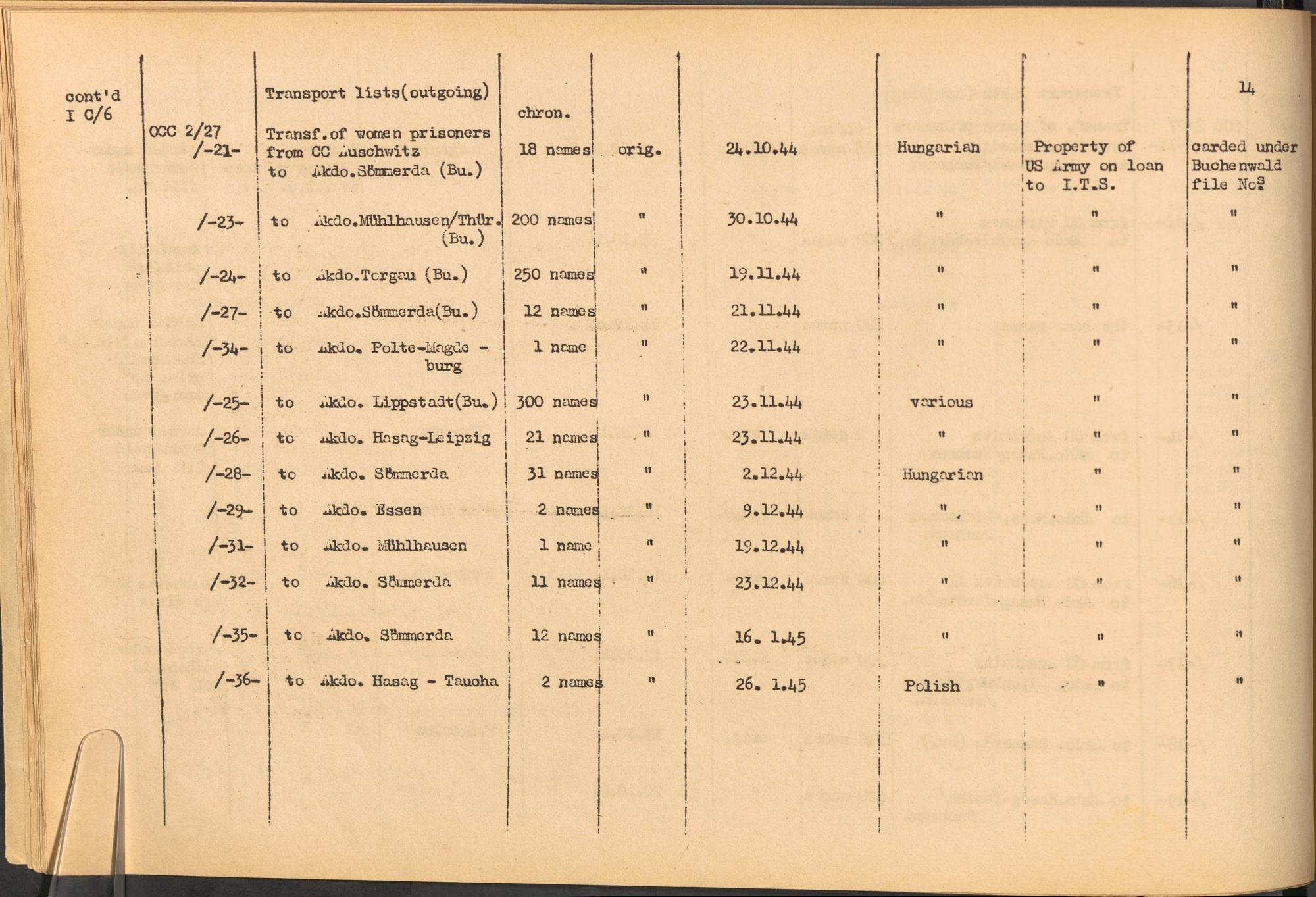 Band 1: Catalogue of Concentration Camp Records held by the International Tracing Service of the Allied High Commission for Germany, Volume I