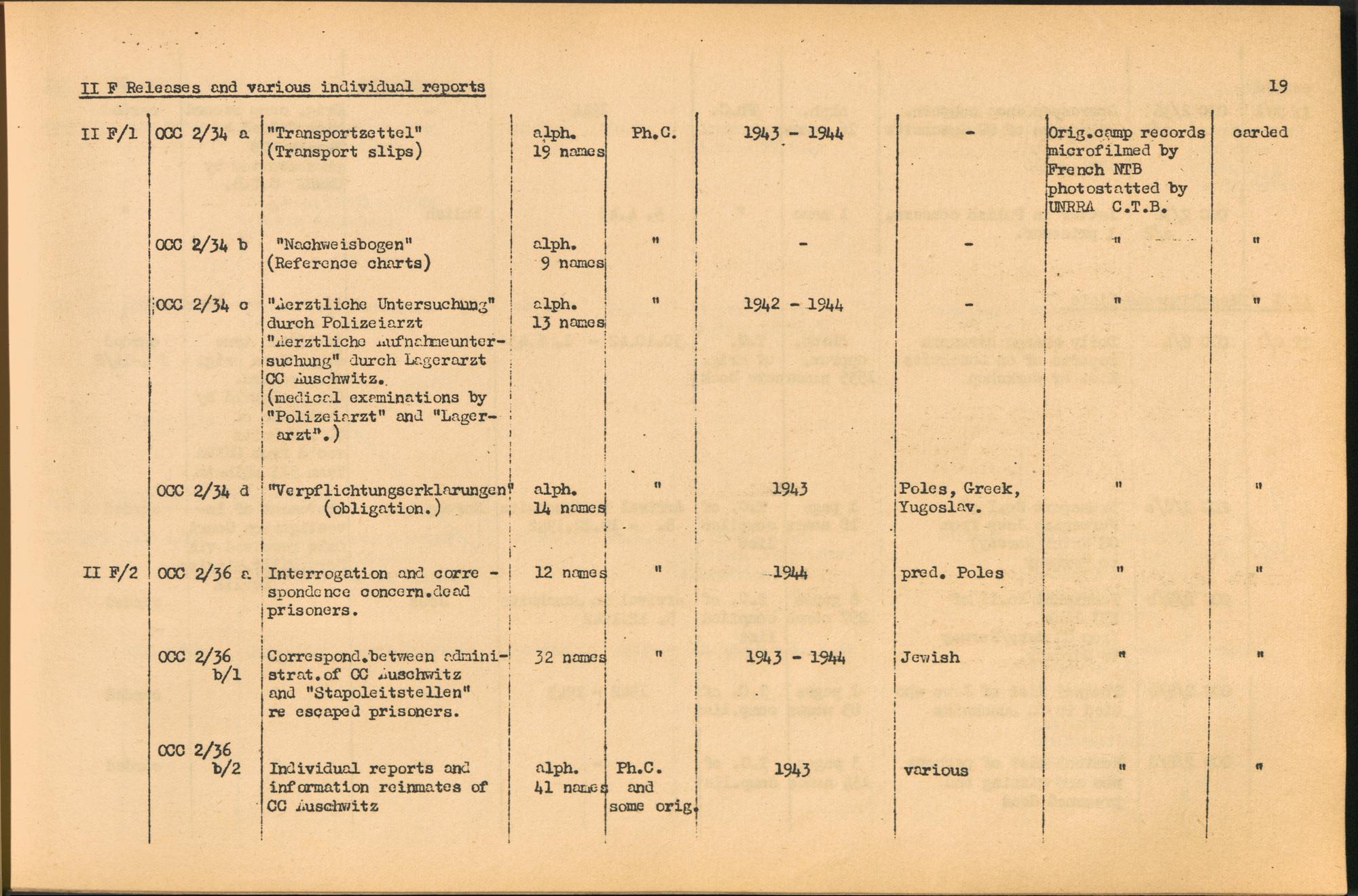 Band 1: Catalogue of Concentration Camp Records held by the International Tracing Service of the Allied High Commission for Germany, Volume I