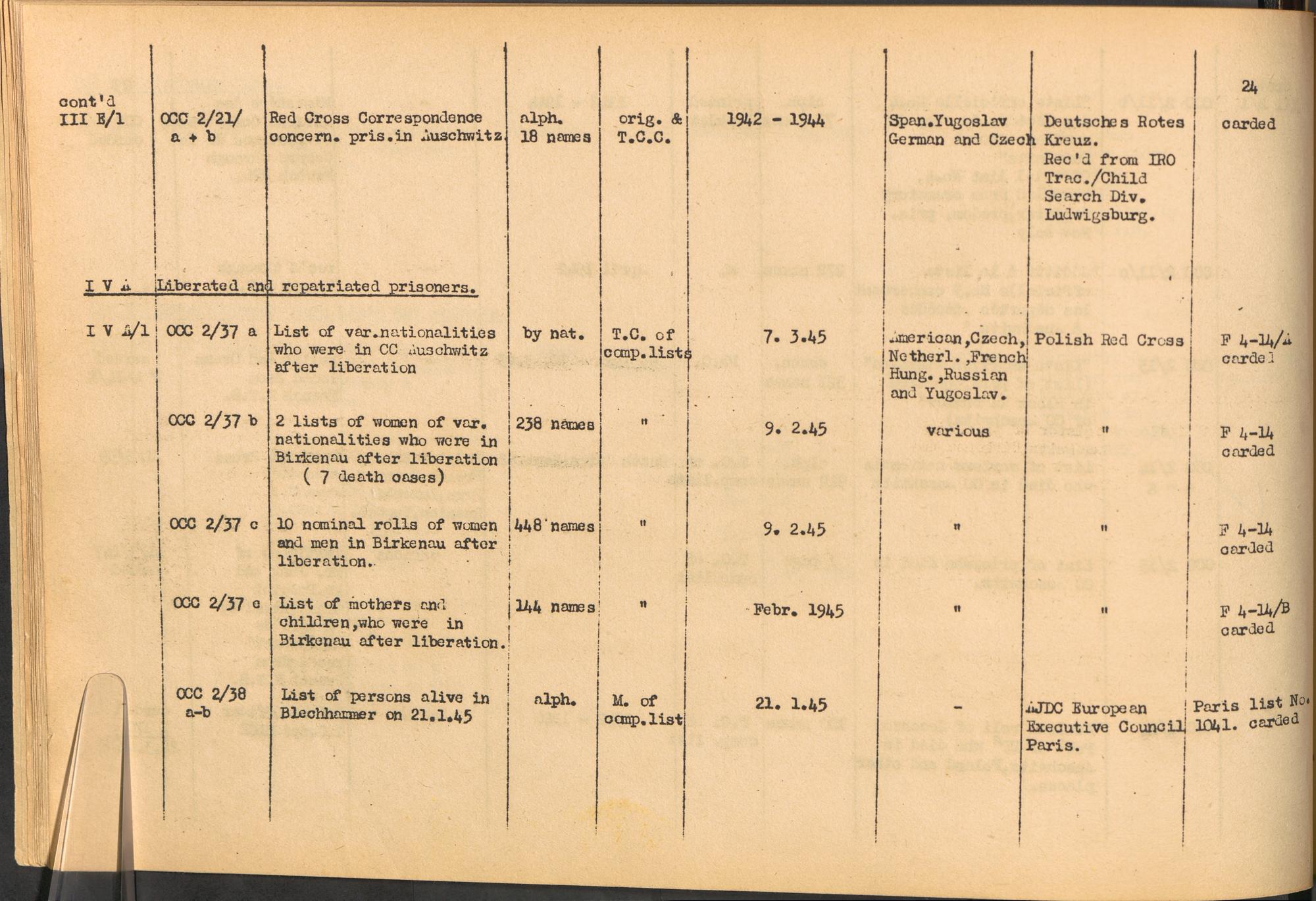 Band 1: Catalogue of Concentration Camp Records held by the International Tracing Service of the Allied High Commission for Germany, Volume I