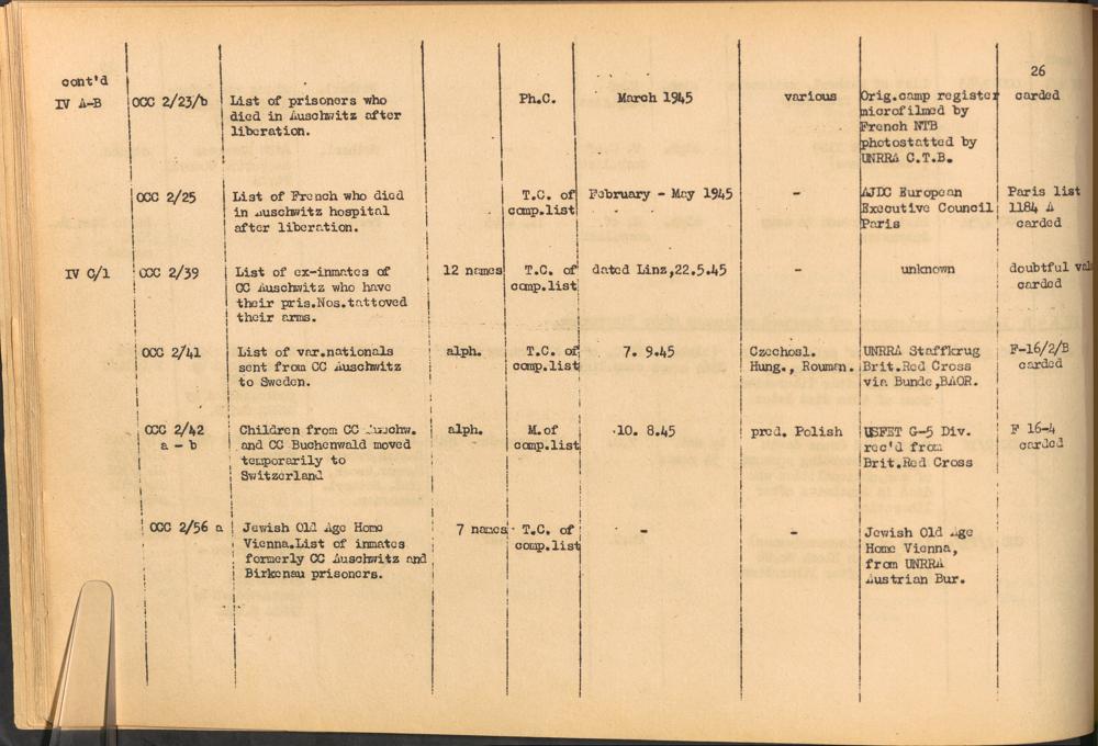 Band 1: Catalogue of Concentration Camp Records held by the International Tracing Service of the Allied High Commission for Germany, Volume I