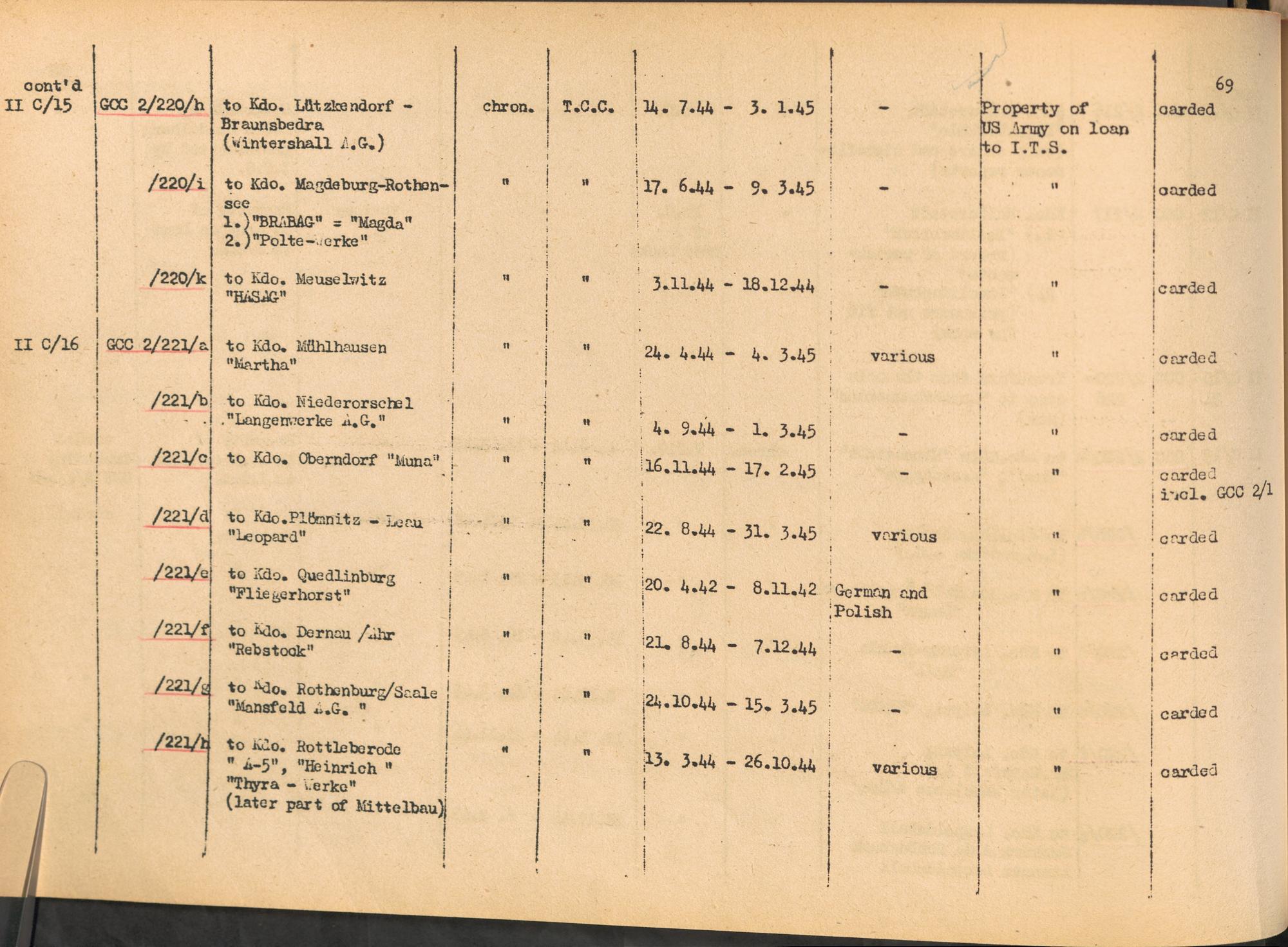 Band 1: Catalogue of Concentration Camp Records held by the International Tracing Service of the Allied High Commission for Germany, Volume I