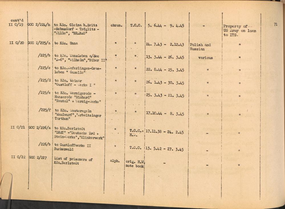 Band 1: Catalogue of Concentration Camp Records held by the International Tracing Service of the Allied High Commission for Germany, Volume I