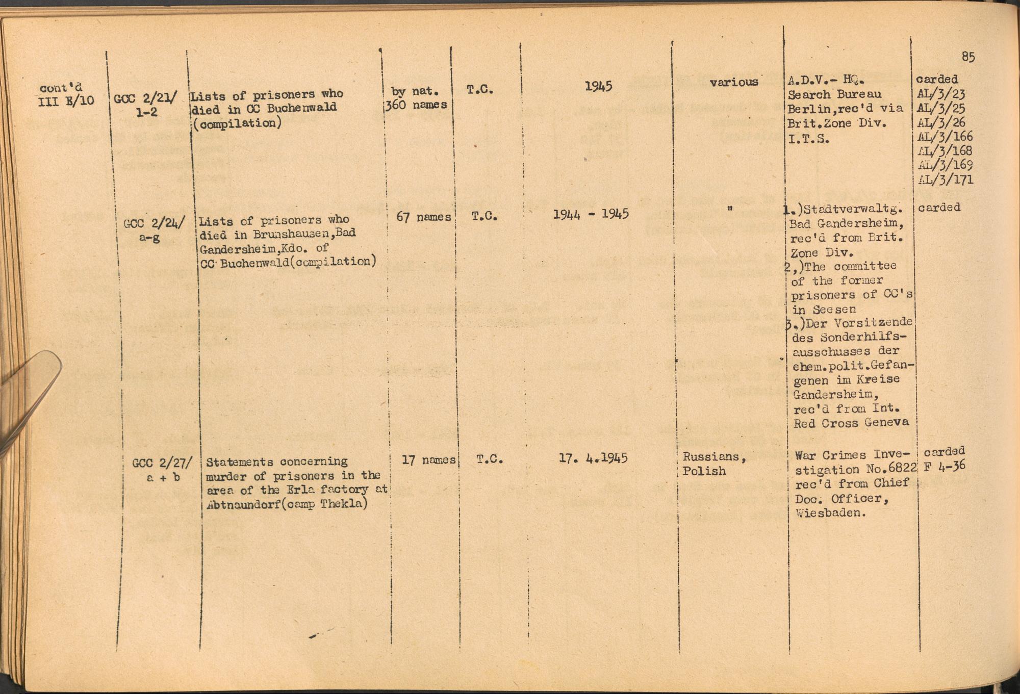 Band 1: Catalogue of Concentration Camp Records held by the International Tracing Service of the Allied High Commission for Germany, Volume I