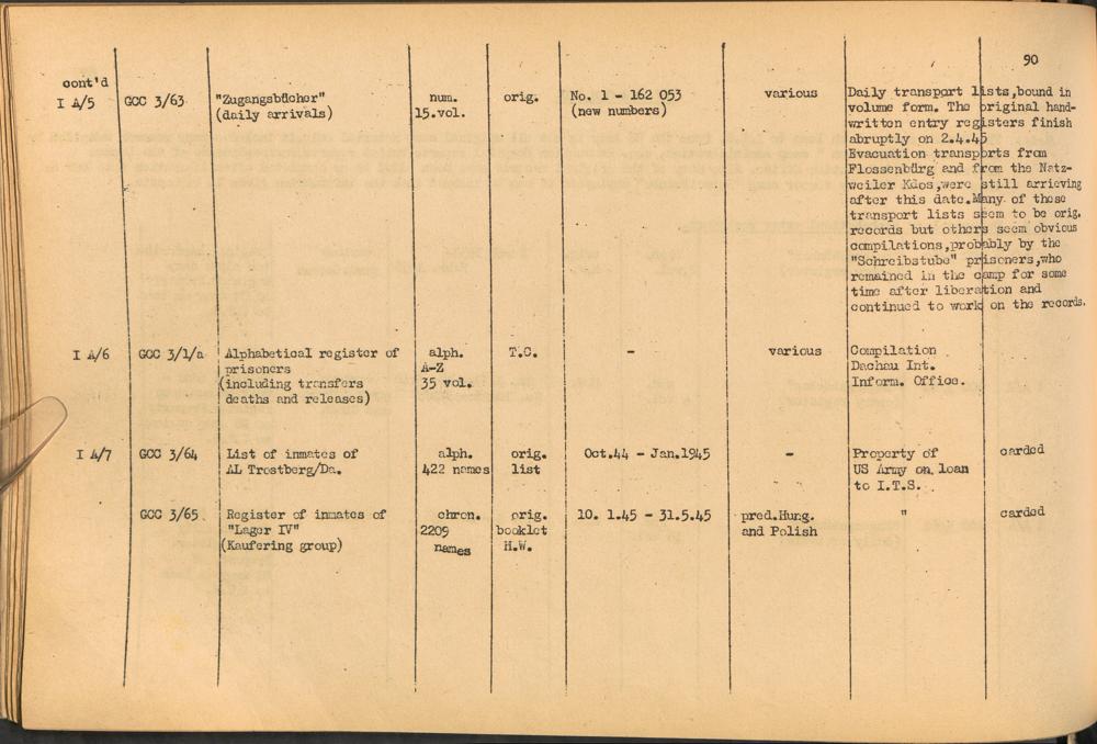 Band 1: Catalogue of Concentration Camp Records held by the International Tracing Service of the Allied High Commission for Germany, Volume I