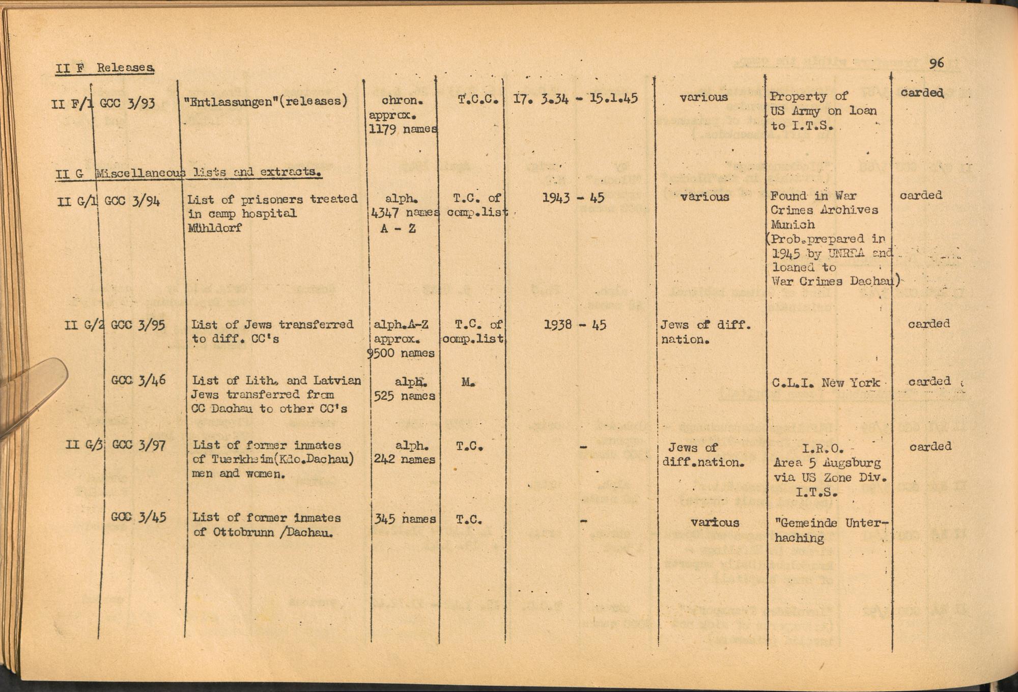 Band 1: Catalogue of Concentration Camp Records held by the International Tracing Service of the Allied High Commission for Germany, Volume I